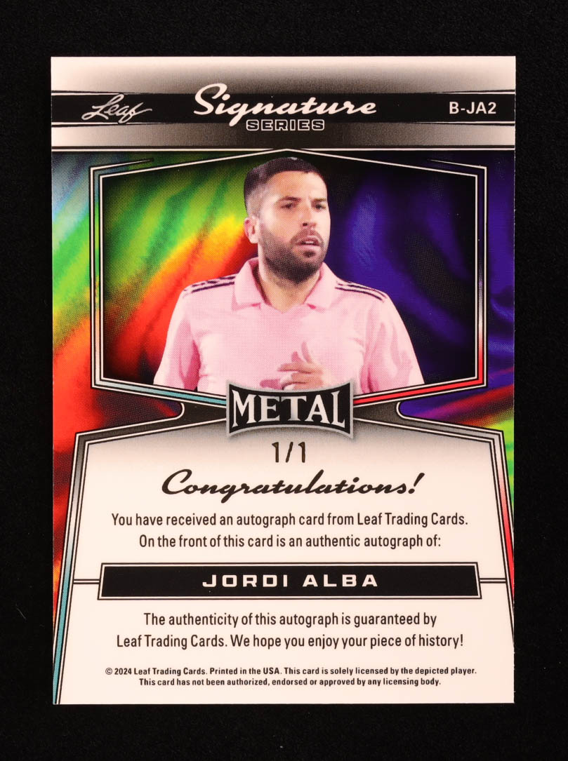 Jordi Alba 2024 Leaf Metal Signature Series Platinum Blue Shimmer #BJA2 #1/1