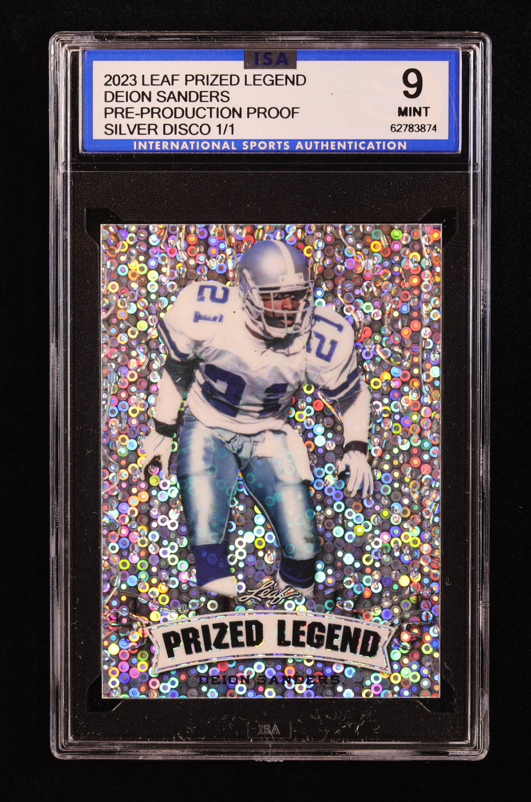 Deion Sanders 2023 Leaf Metal Prized Legend Disco Silver Pre-Production Proof #NNO #1/1 (ISA 9)
