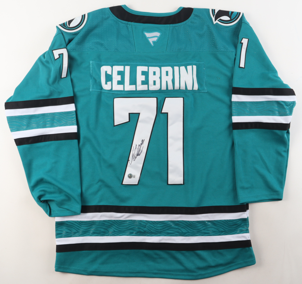 Fanatics jersey with everything sewn on, size 54. Hand-signed by Macklin Celebrini.
