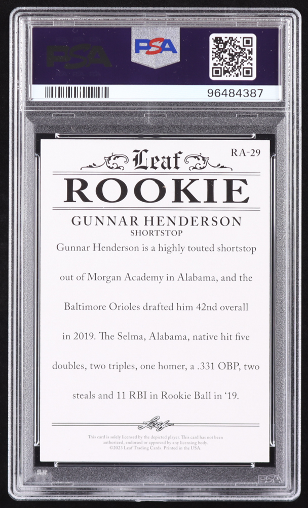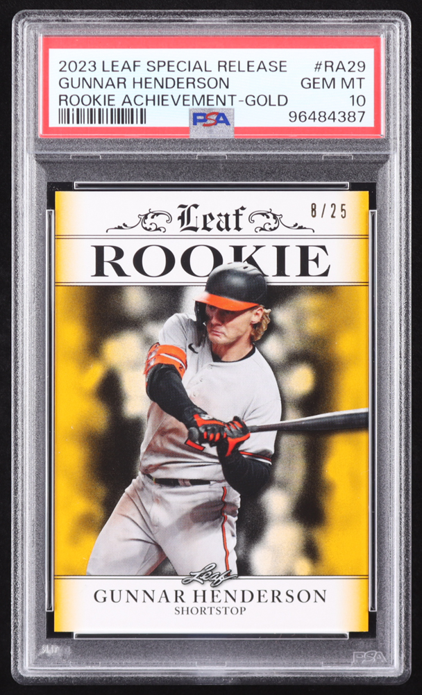 Gunnar Henderson 2023 Leaf Special Release Rookie Achievement Gold #RA29 RC #8/25 (PSA 10)