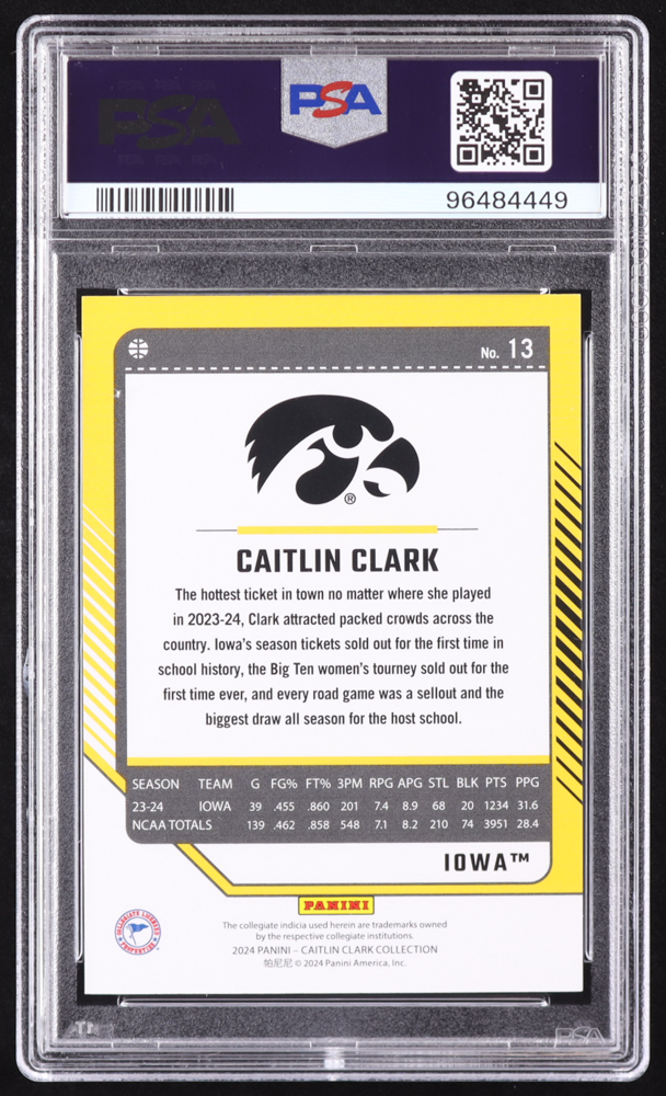 Caitlin Clark 2024 Panini Caitlin Clark Collection Donruss Vortex #13 RC #16/399 (PSA 9)