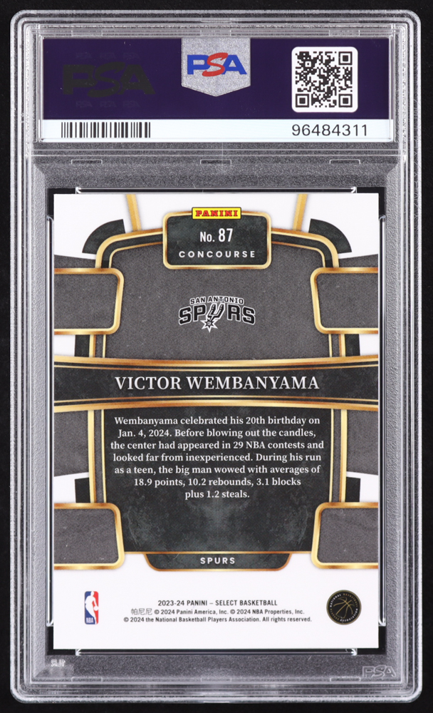 Victor Wembanyama 2023-24 Select Blue #87 RC (PSA 10)