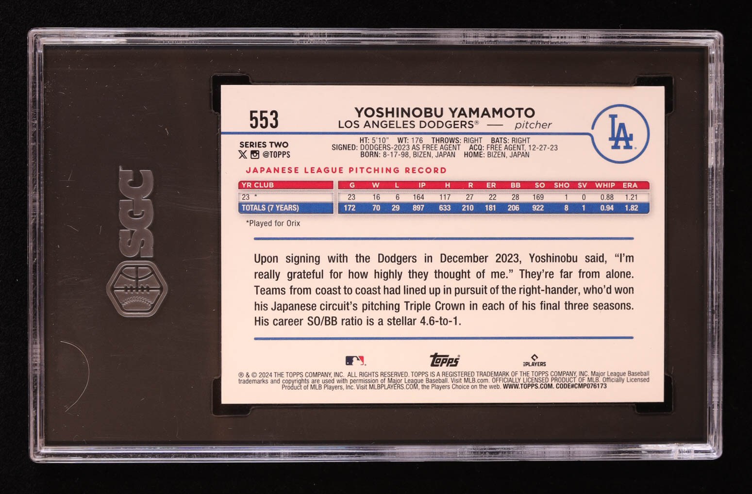 Yoshinobu Yamamoto 2024 Topps Rainbow Foil #553 RC (SGC 10)