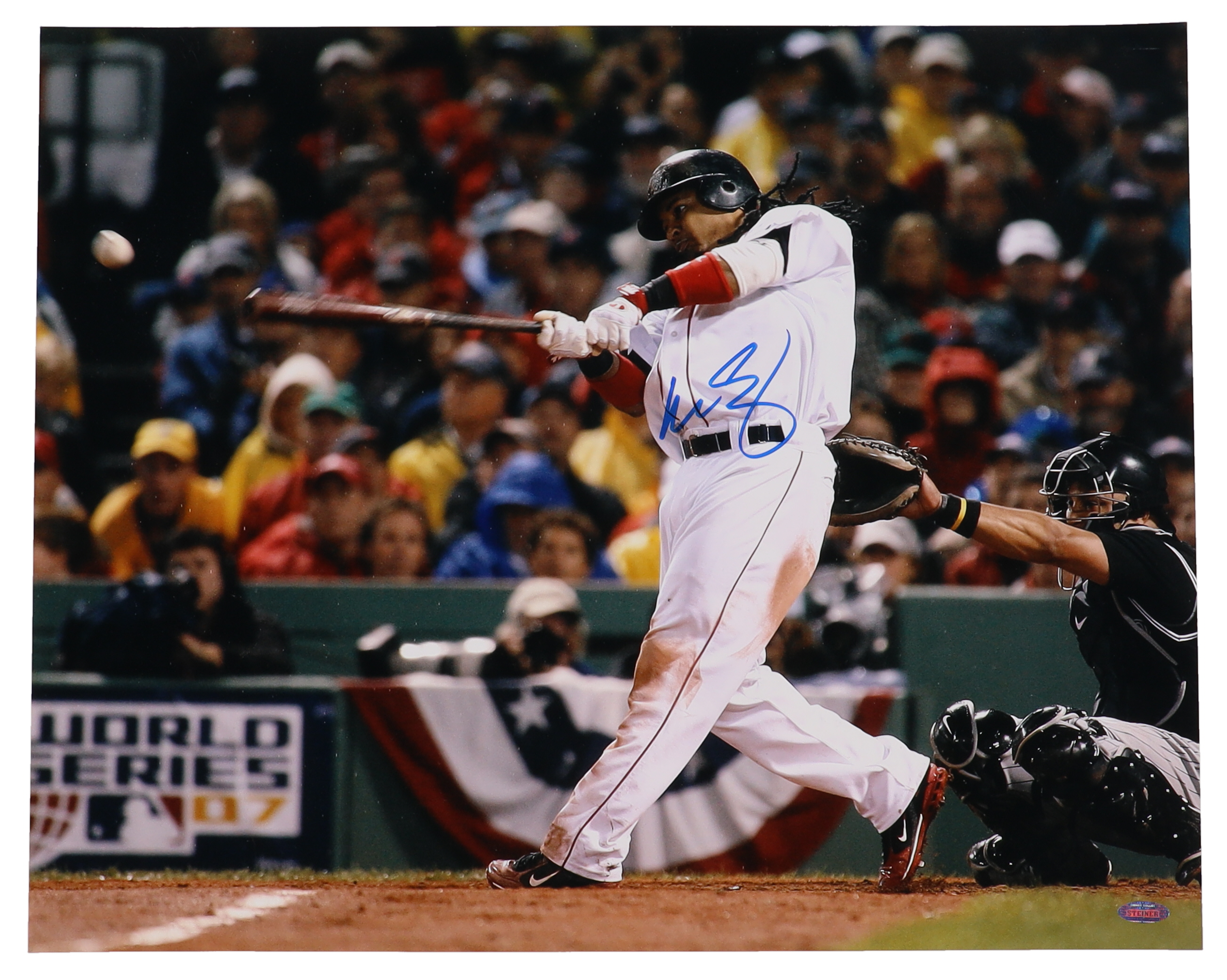 Photo measures 16" x 20" in size and has been hand-signed by Manny Ramirez (Boston Red Sox).
