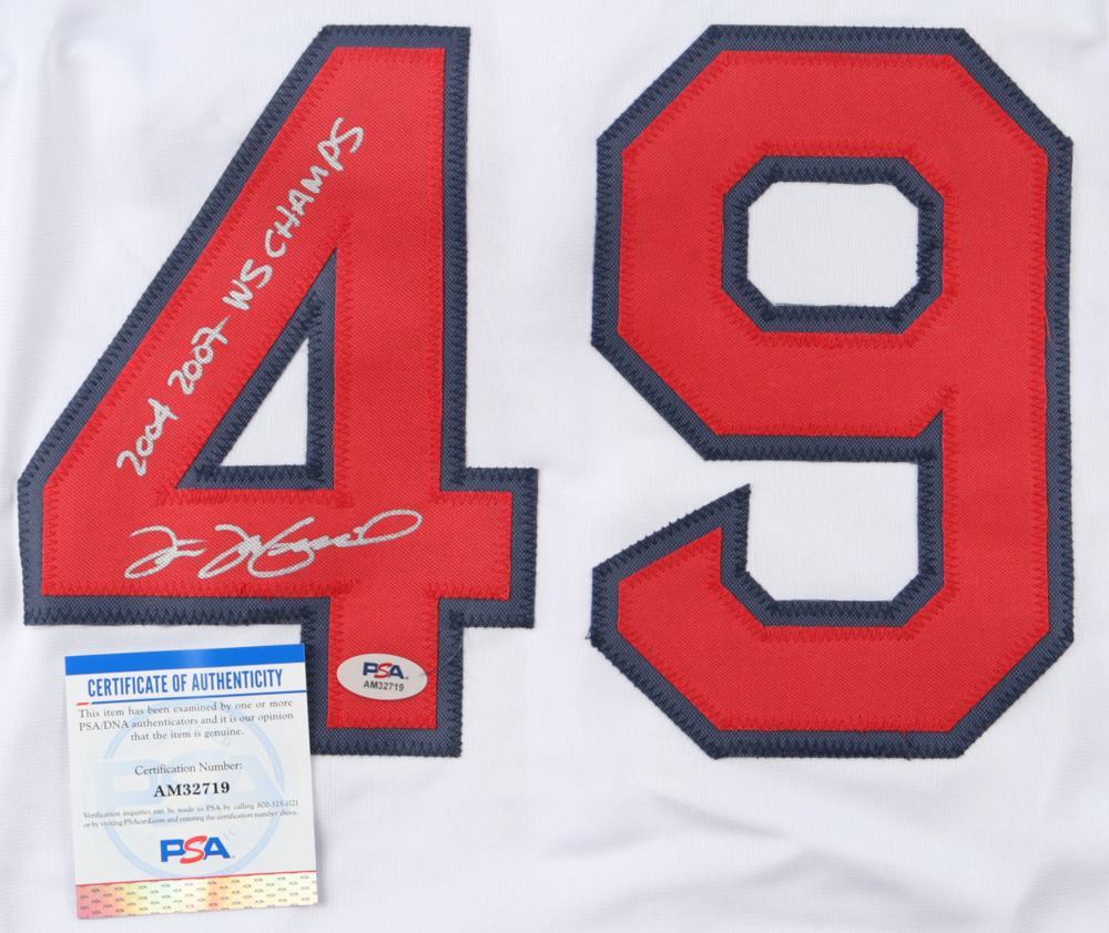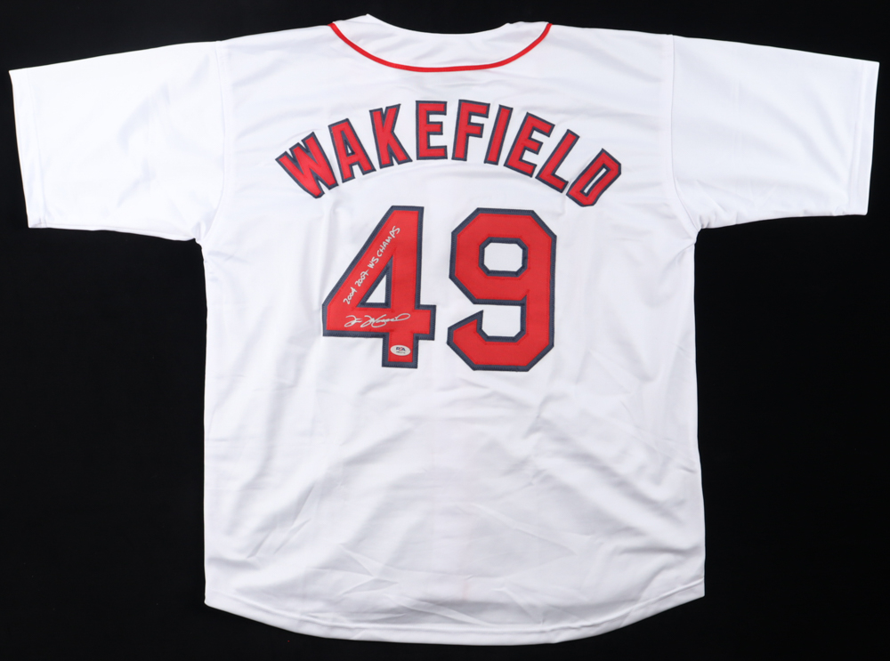 Tim Wakefield Signed Jersey Inscribed "2004 2007 WS Champs" (PSA)