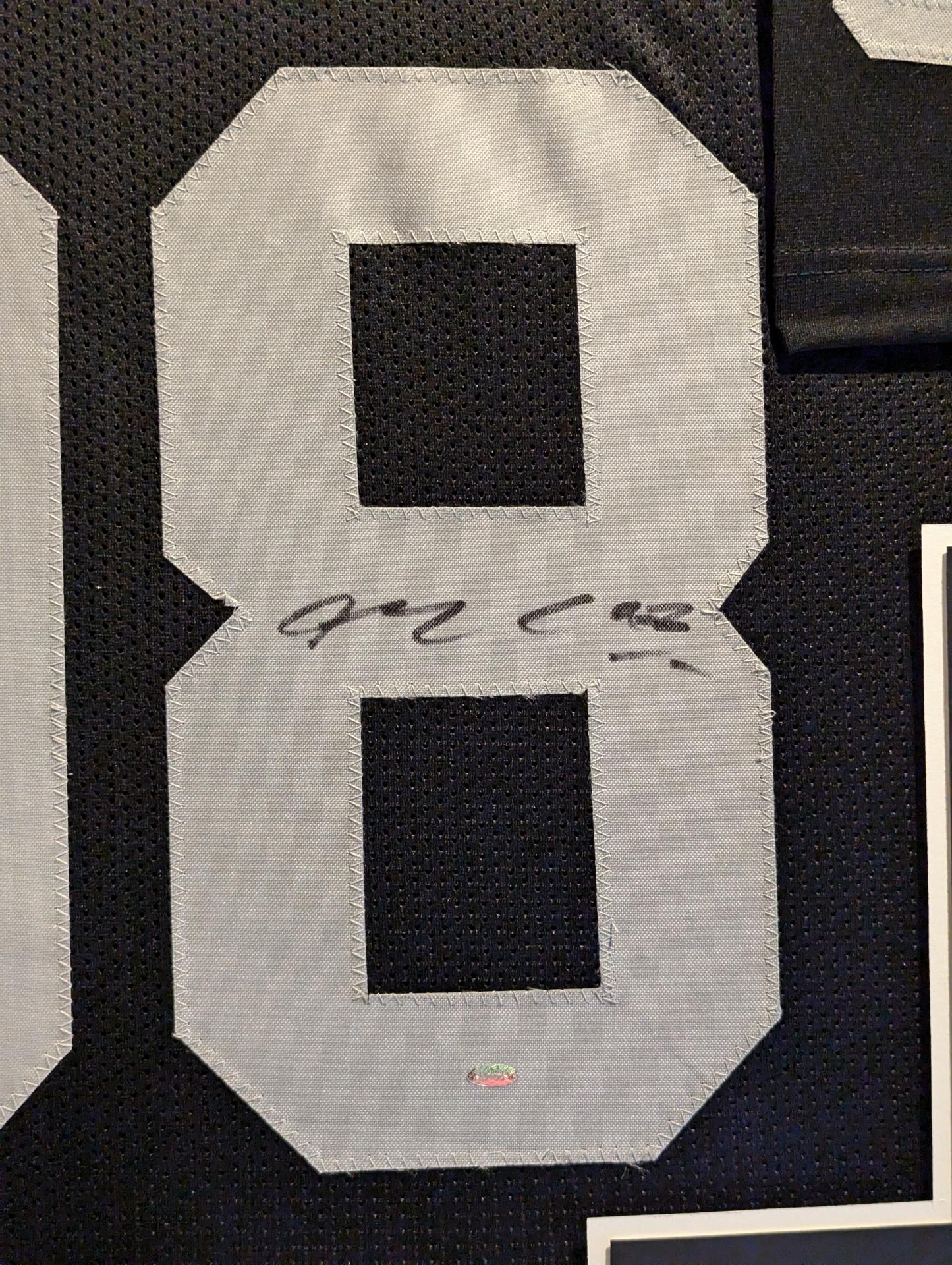 Custom frame measures approximately 34" x 42" in size and features a jersey that has been hand-signed by Maxx Crosby.