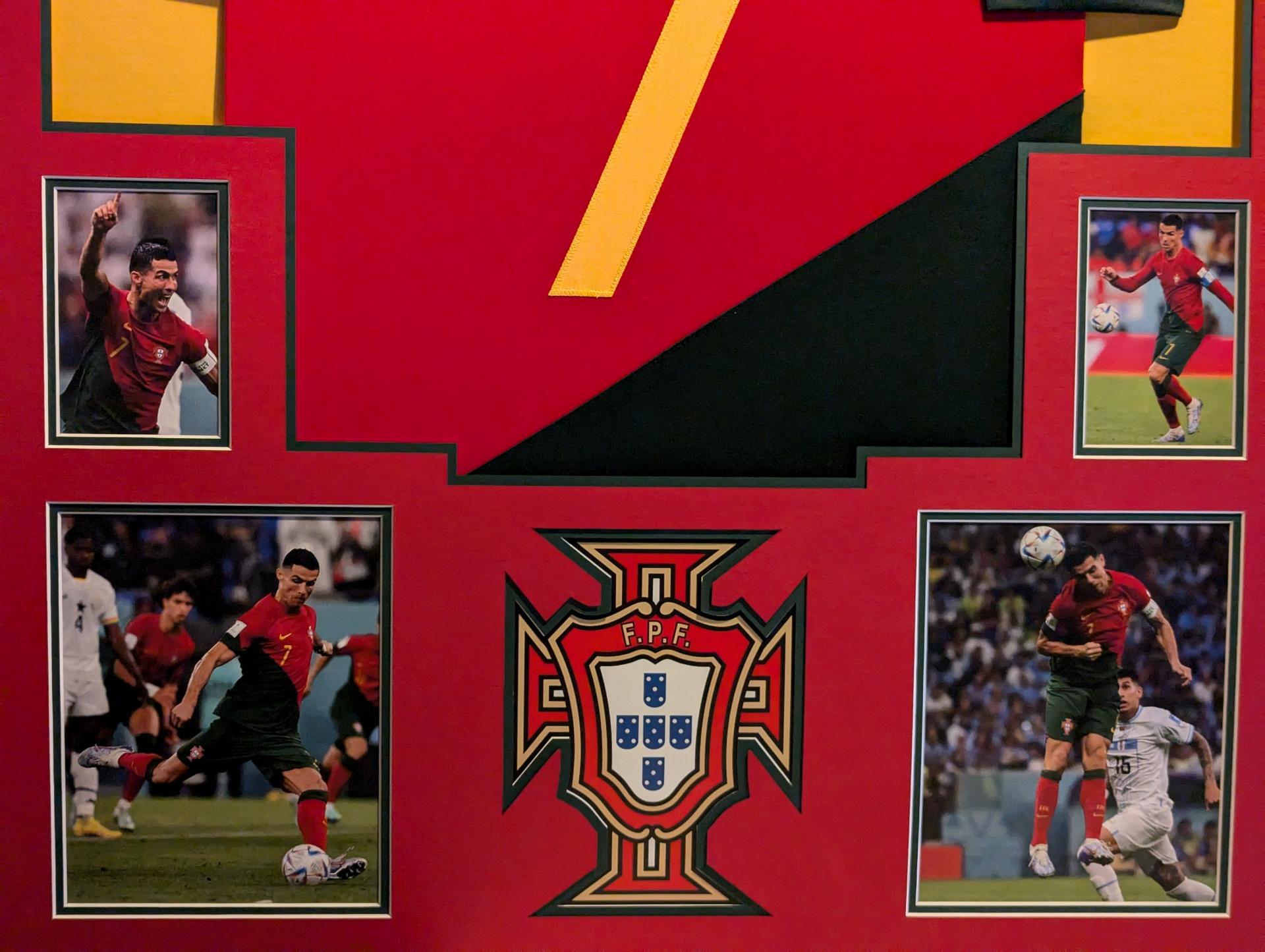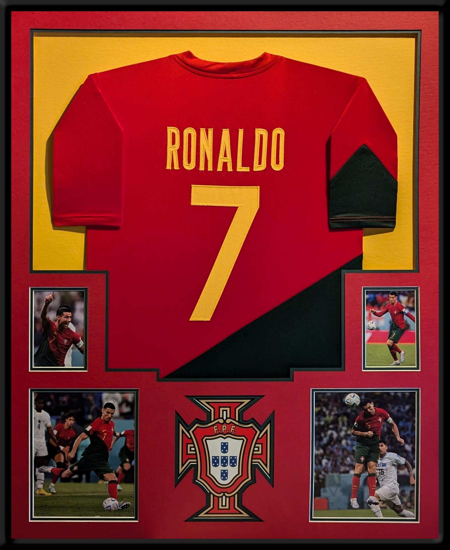 Custom frame measures approximately 34" x 42" in size and features an unsigned Christian Ronaldo jersey. Please note that the item is unsigned.