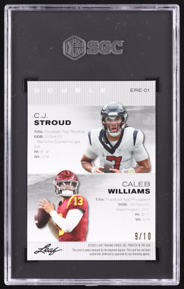 CJ Stroud / Caleb Williams 2023 Leaf Special Release Metal Exclusive Rookie Edition Pink #ERE01 #09/10 RC (SGC 9.5)