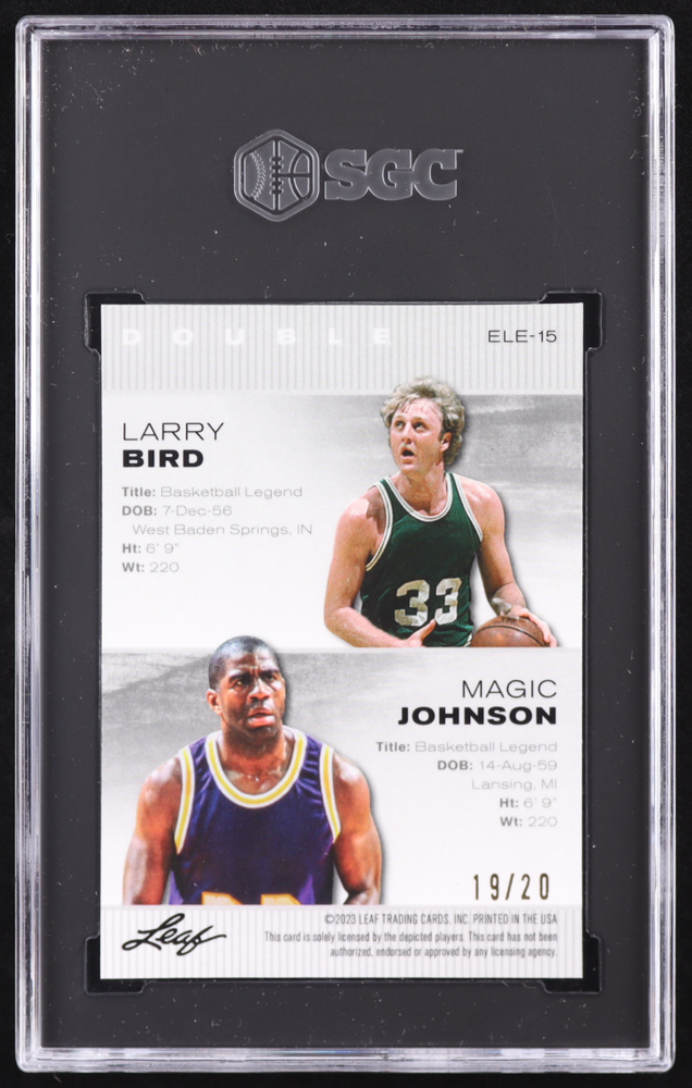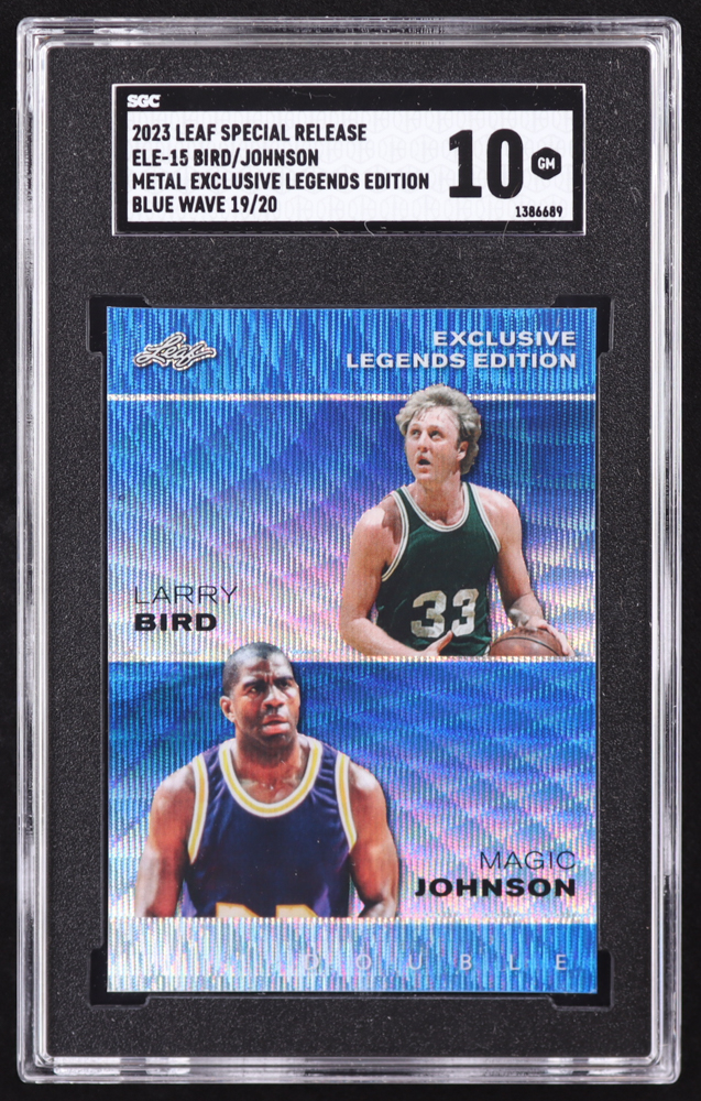 Larry Bird / Magic Johnson 2023 Leaf Special Release Metal Exclusive Legends Edition Wave Blue #ELE15 #19/20 (SGC 10)