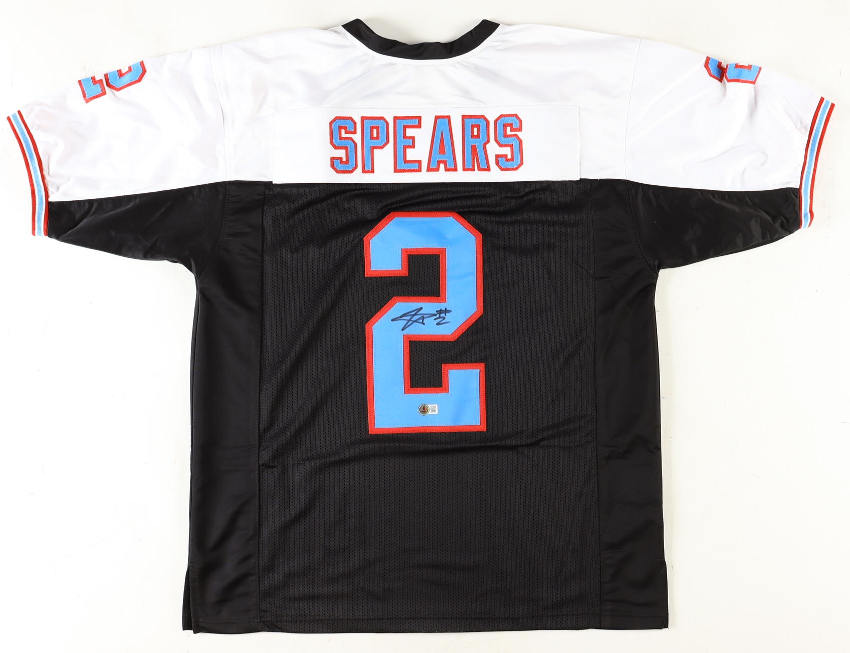 Custom jersey. Everything sewn on, size XL. Hand-signed by Tyjae Spears.