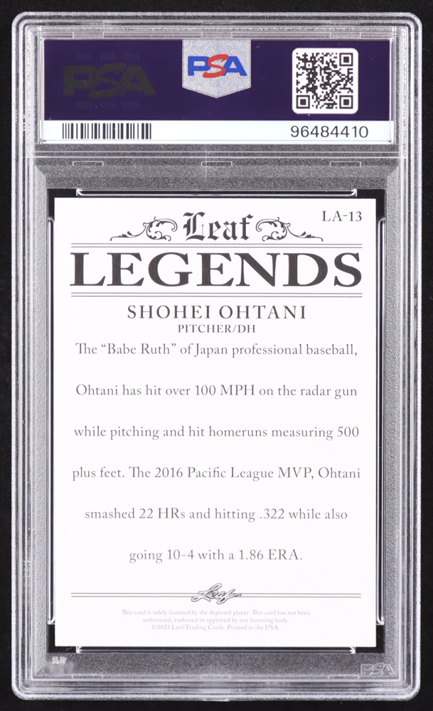Shohei Ohtani 2023 Leaf Special Release Legends Achievement Purple #LA13 #2/10 (PSA 10)