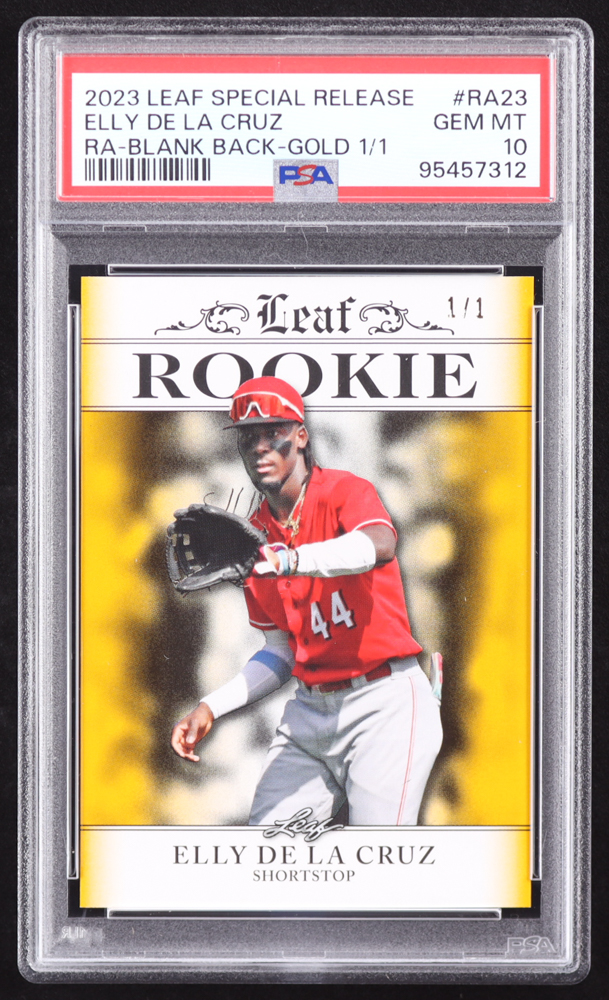 Elly De La Cruz 2023 Leaf Special Release Rookie Achievement Blank Back Gold #RA23 RC #1/1 (PSA 10)