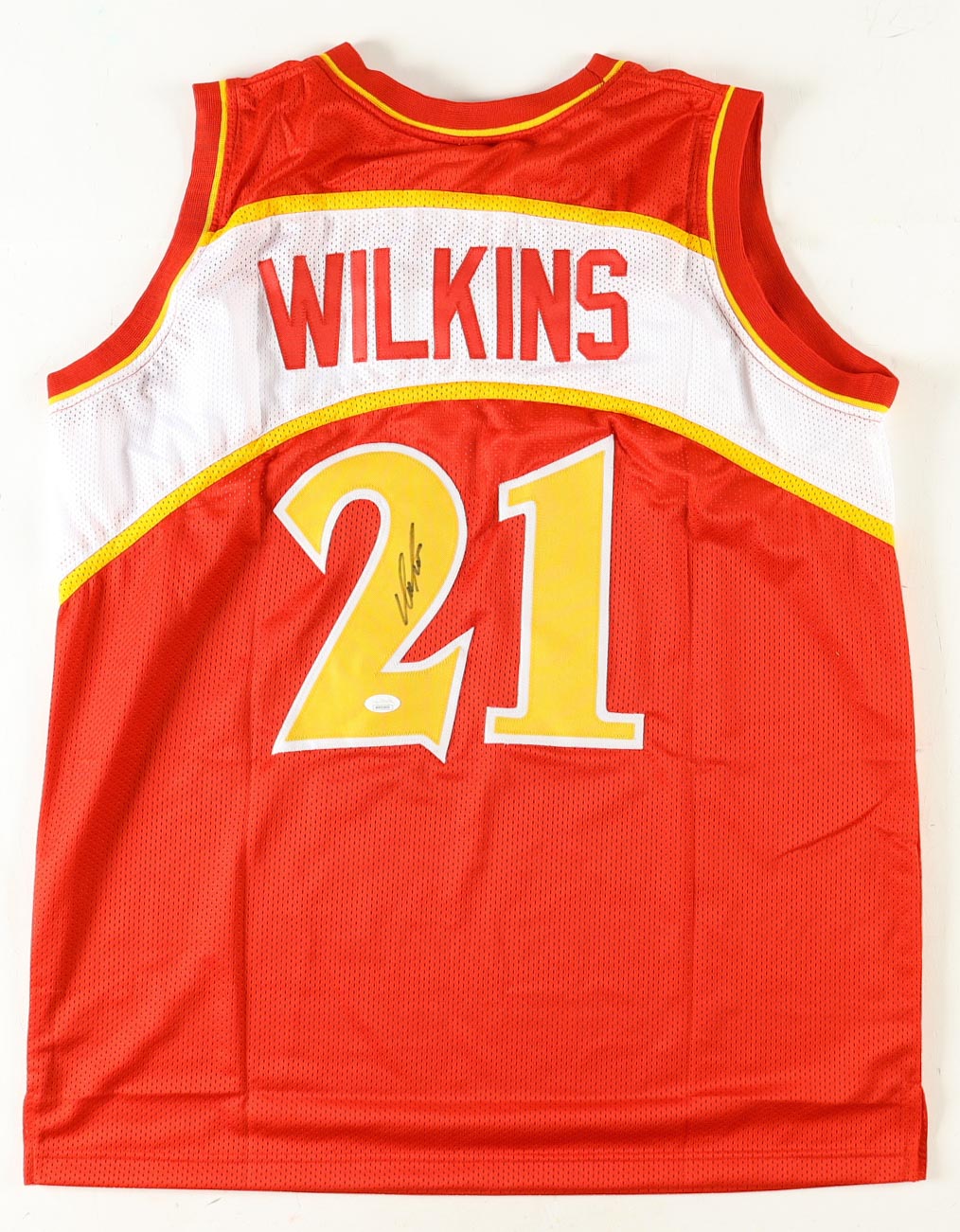 Custom jersey, everything sewn on, size XL. Hand-signed by Dominique Wilkins (HOF).