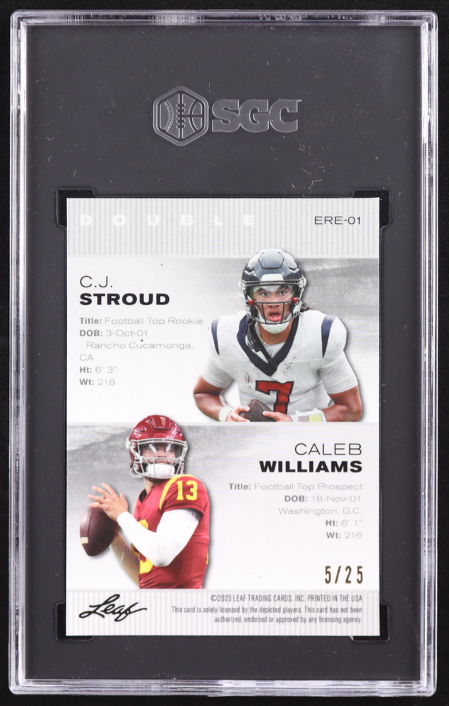 CJ Stroud / Caleb Williams 2023 Leaf Special Release Metal Exclusive Rookie Edition Silver #ERE01 #05/25 RC (SGC 9.5)