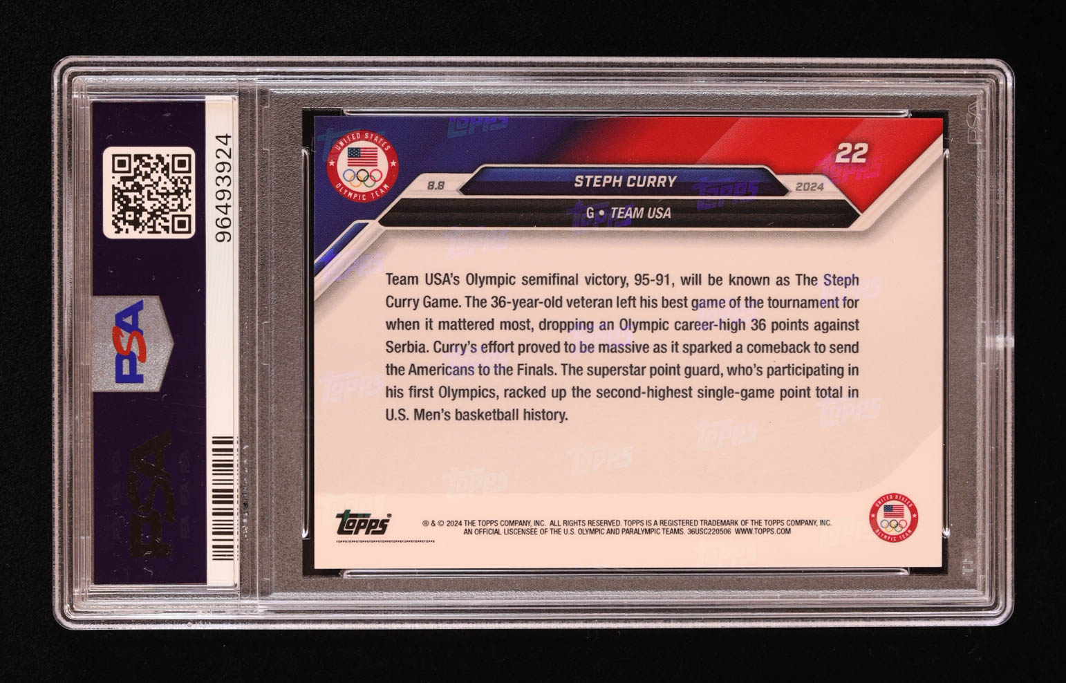 Stephen Curry 2024 Topps Now Olympic Games #22 (PSA 10)