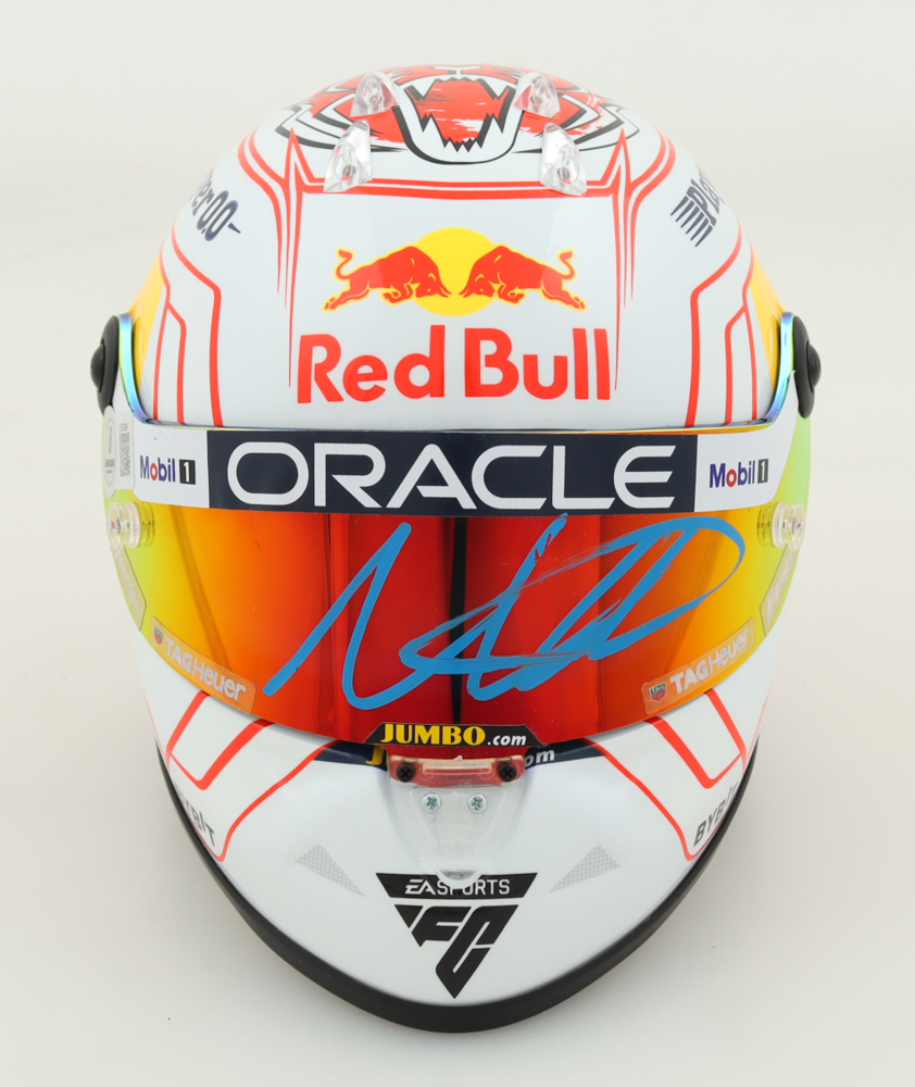 Red Bull Racing Oracle mini racing helmet has been hand-signed on the visor by Max Verstappen. See photos for more details.