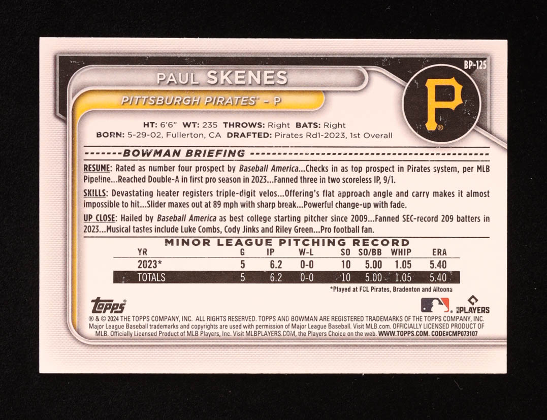 Paul Skenes 2024 Bowman Prospects #BP125 RC