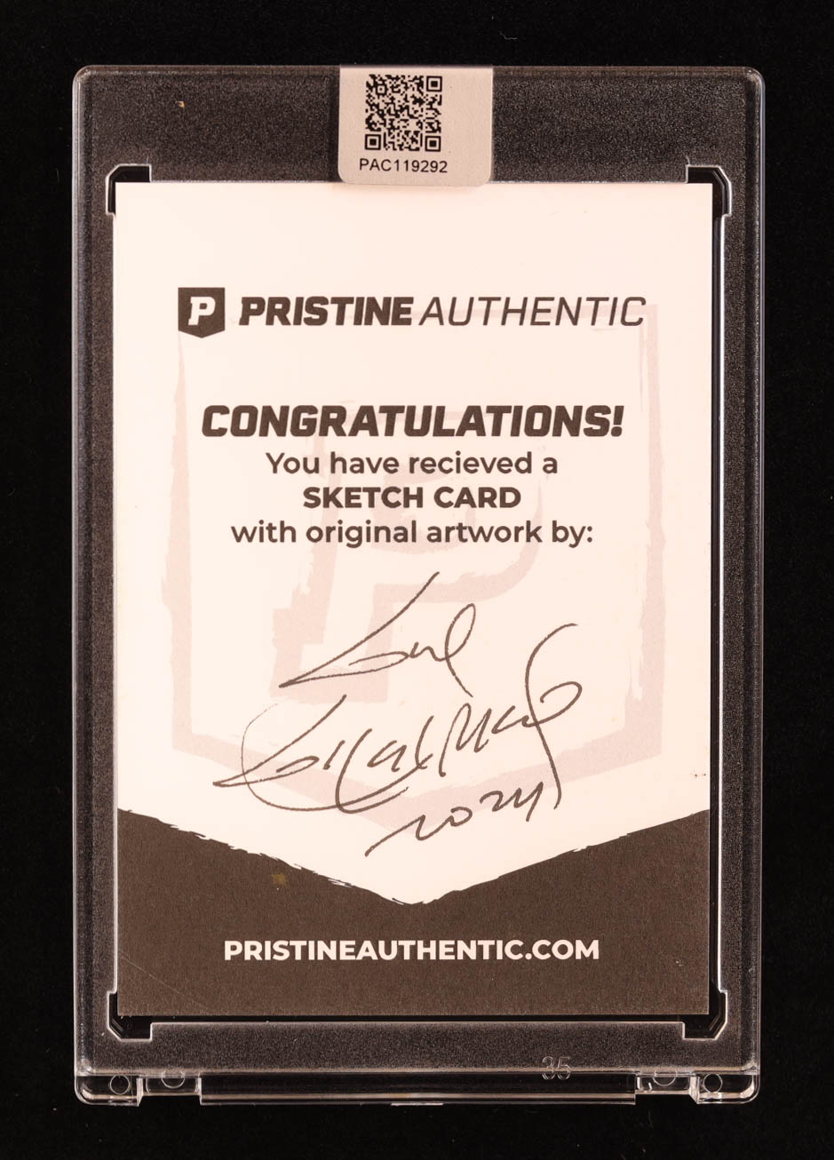 This sketch card includes original art by world-renowned illustrator, Guy Gilchrist. The card is hand-signed on the back by Gilchrist.