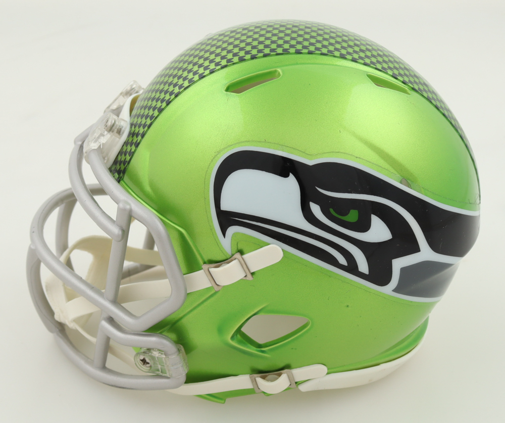 Riddell Seattle Seahawks Flash Alternate Speed mini helmet. Hand-signed by DK Metcalf.