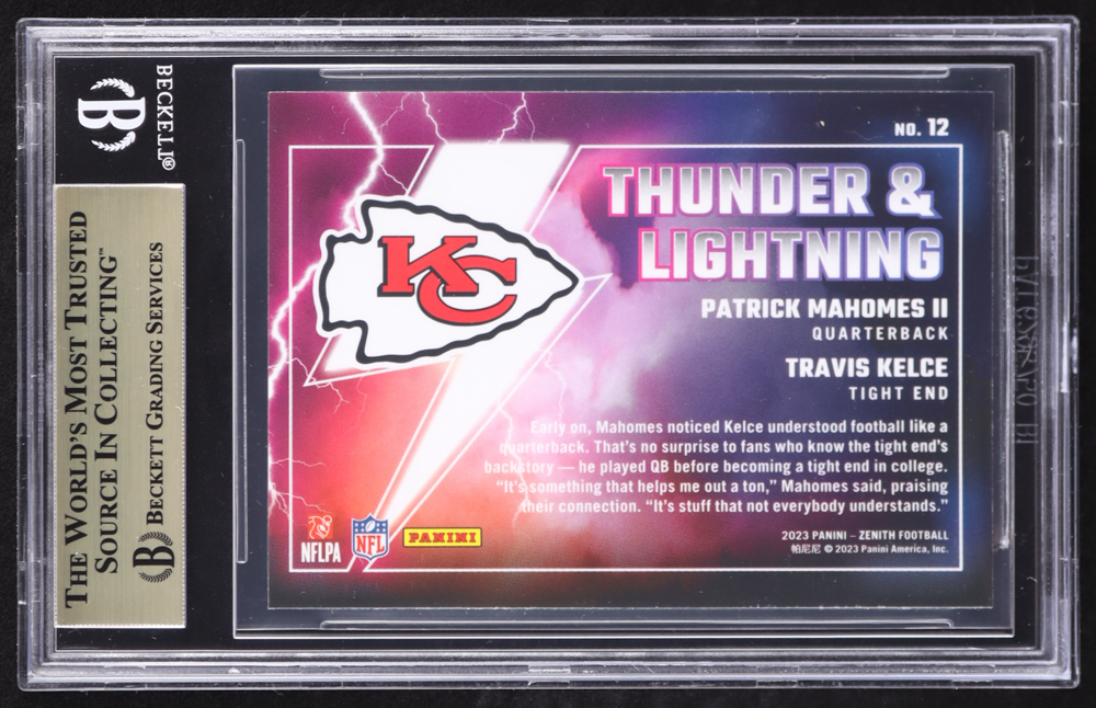 Patrick Mahomes II / Travis Kelce 2023 Zenith Thunder & Lightning #12 (BGS 9.5)