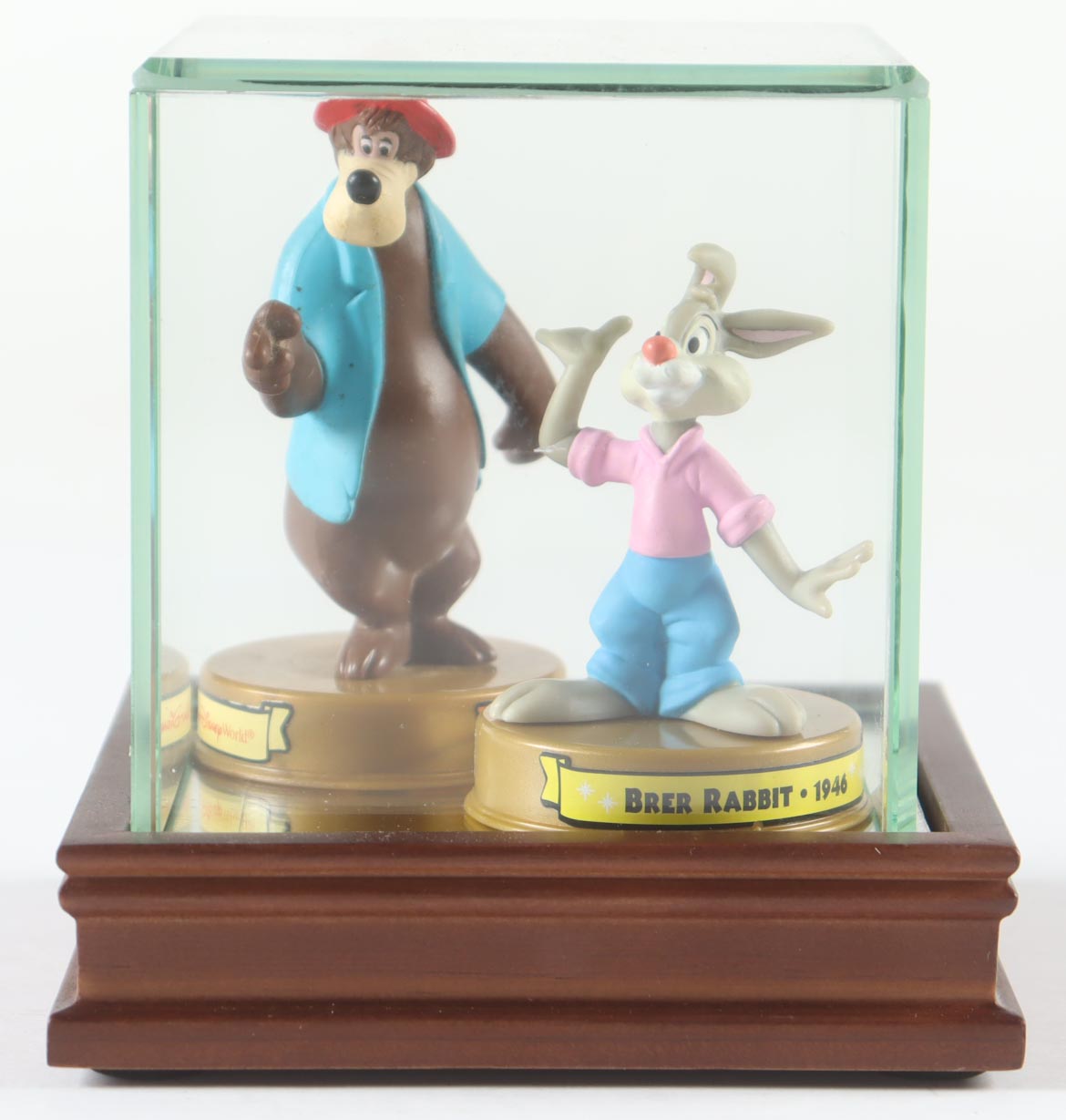 Brer Rabbit & Brer Bear 2002 McDonalds Retired Disney Character Figures in Wood & Glass Display Case