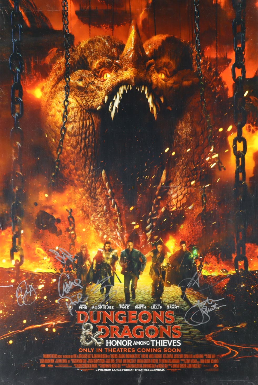 Chris Pine, Micheele Rodriguez, John Francis Daley | "Dungeons & Dragons: Honor Among Thieves" 27x40 Movie Poster Cast-Signed By (6) (ACOA)