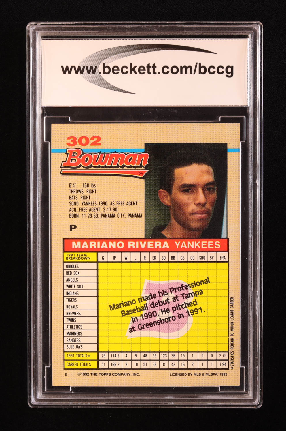 Mariano Rivera 1992 Bowman #302 RC (BCCG 10)