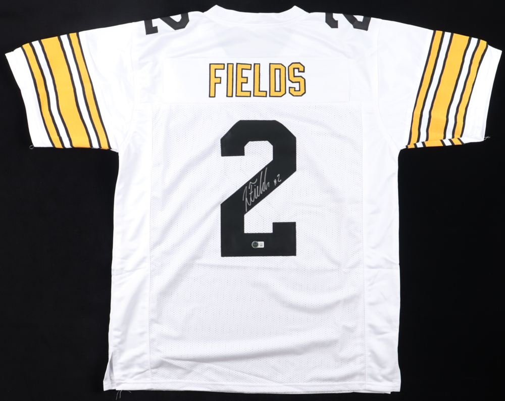 Custom jersey with everything sewn on, size XL. Hand-signed by Justin Fields.