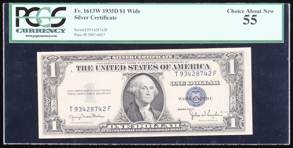 1935-D U.S. $1 Silver Certificate - Fr. 1613-W Signed: Clark / Snyder (PCGS Choice About New 55)
