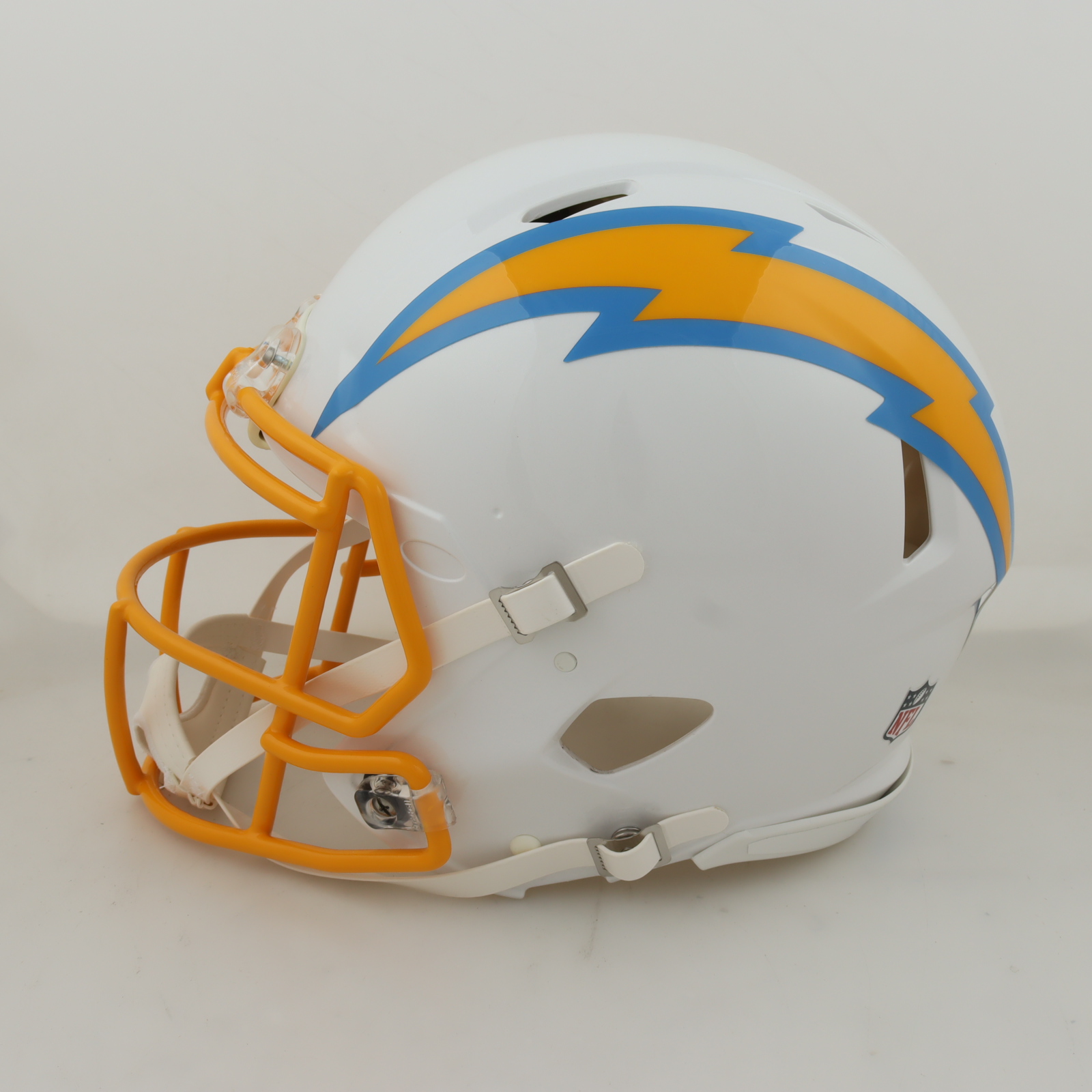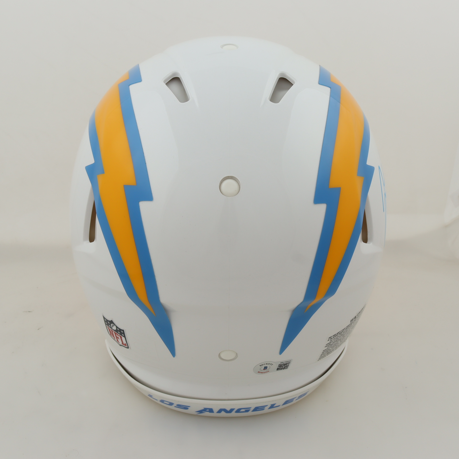 Riddell Los Angeles Chargers full-size authentic on-field speed helmet has been hand-signed by Justin Herbert.