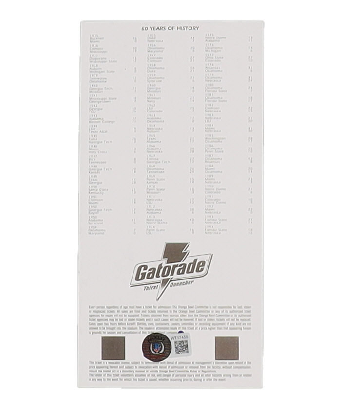 Grant Wistrom Signed Orange Bowl Replica Ticket (Beckett)