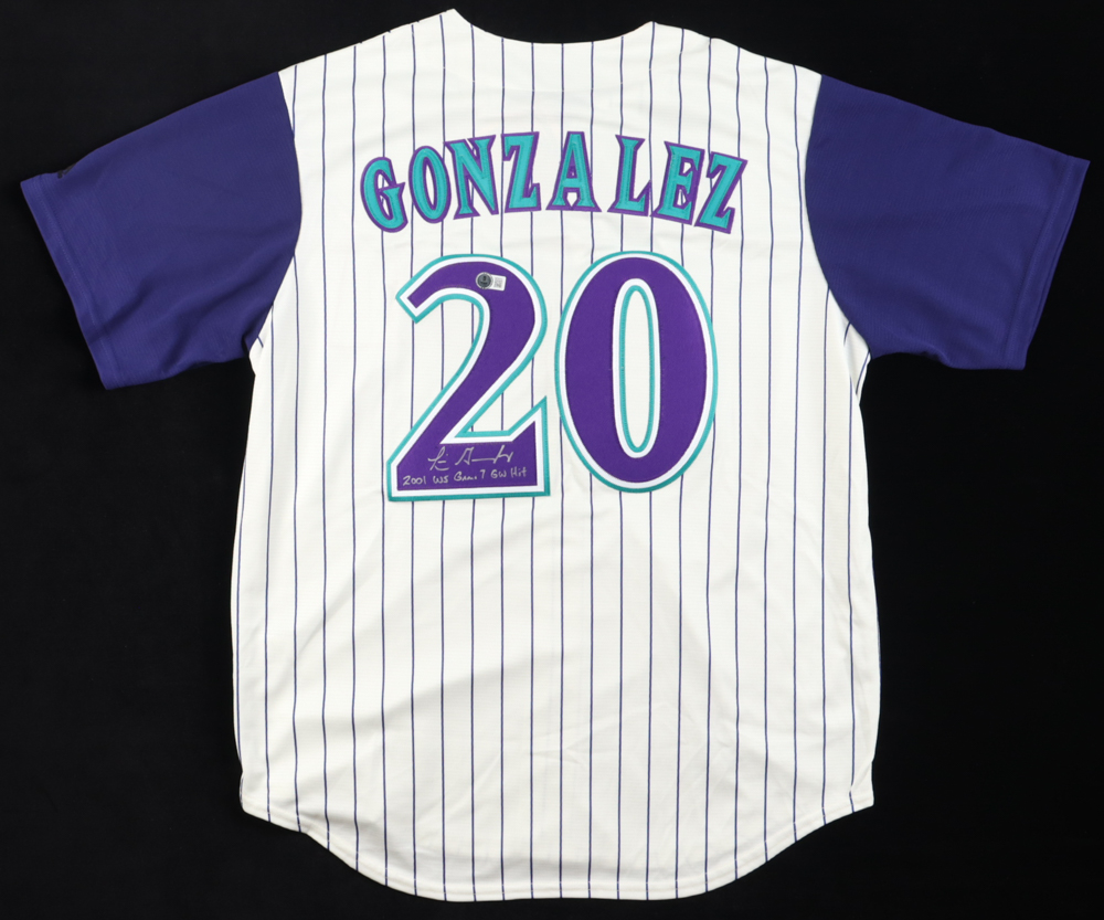 Luis Gonzalez Signed Diamondbacks Jersey Inscribed "2001 WS Game 7 GW Hit" (Beckett)