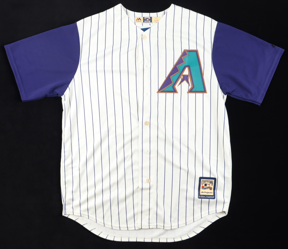 Majestic Cooperstown Collection jersey with everything is sewn on, size L. Hand-signed and inscribed by Luis Gonzalez (Arizona Diamondbacks).