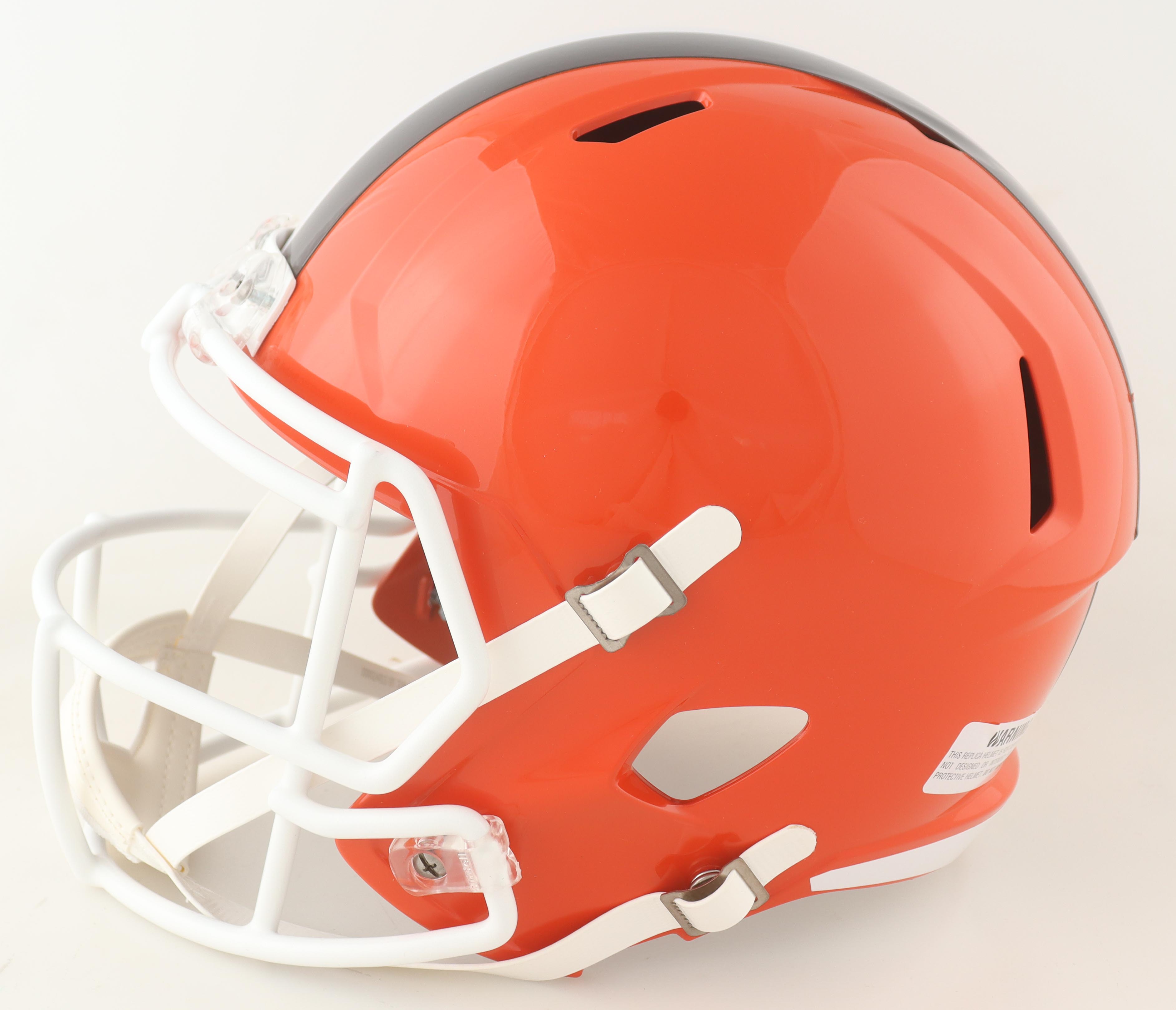 Riddell Cleveland Browns full-size Replica speed helmet has been hand-signed by Myles Garrett.