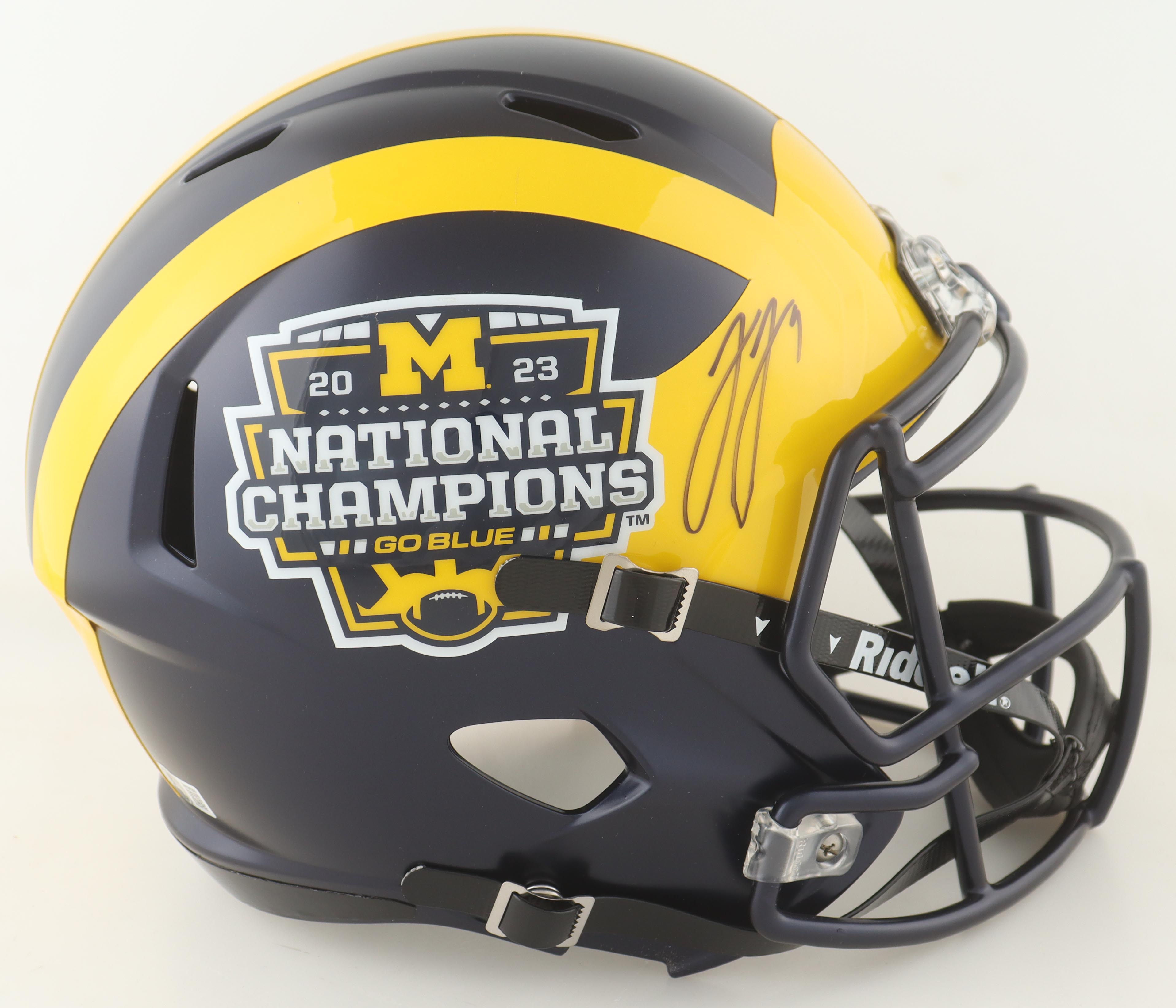 J.J. McCarthy Signed Michigan Wolverines 2023 National Champions Logo Full-Size Speed Helmet (Beckett)