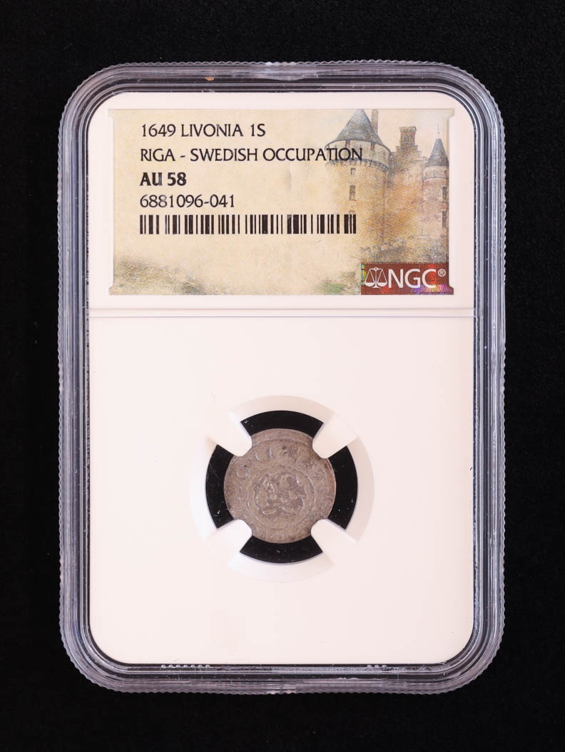 1649 Livonia - 1 Silver Solidus - Queen Christina of Sweden Occupation (NGC AU58)