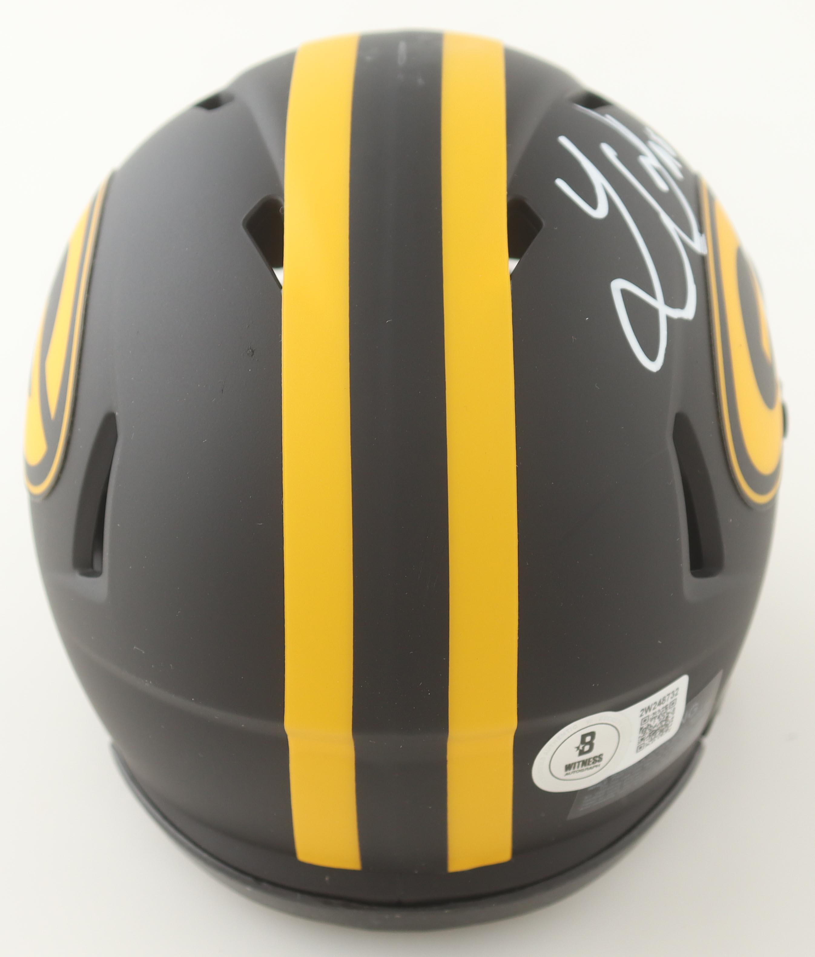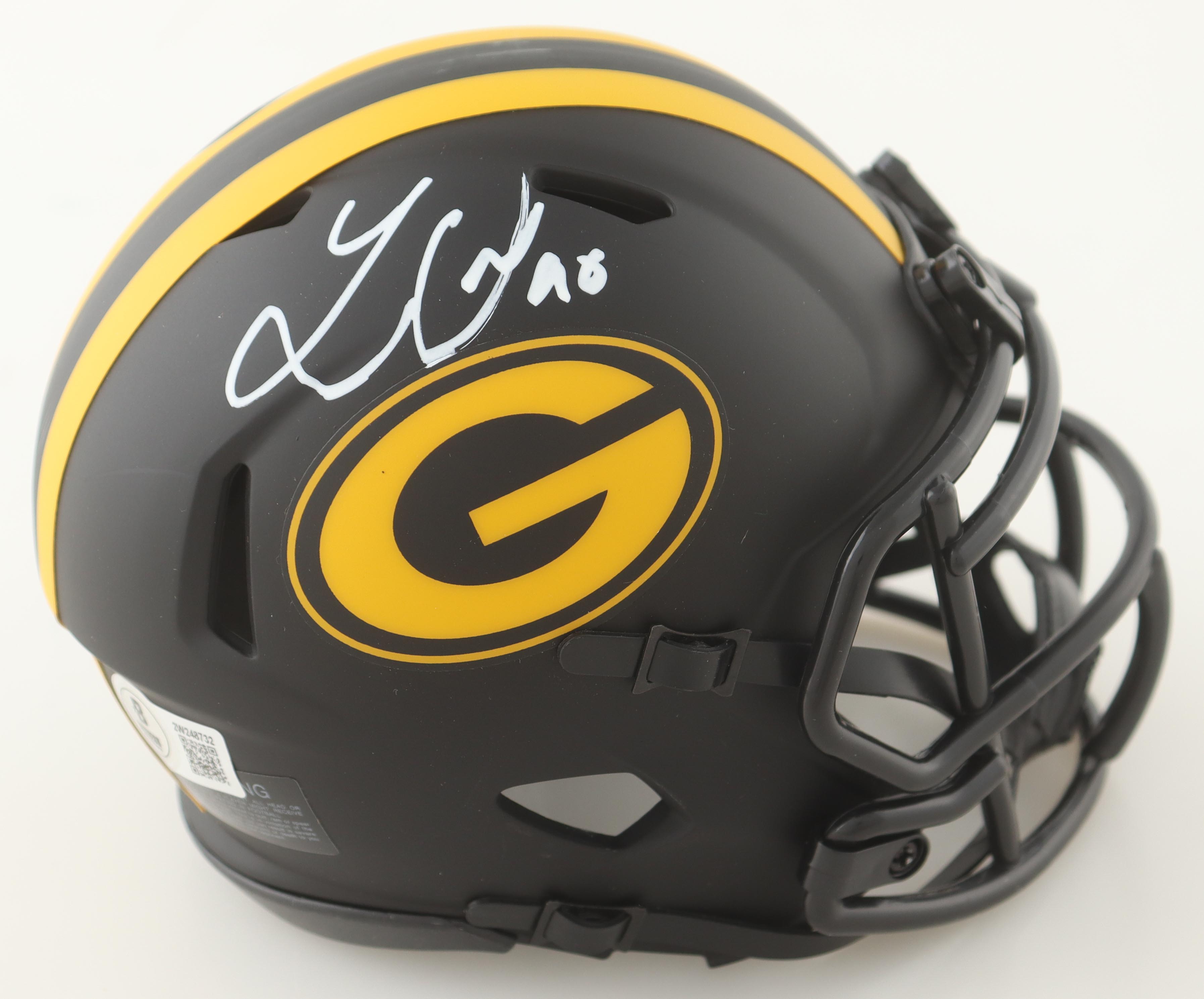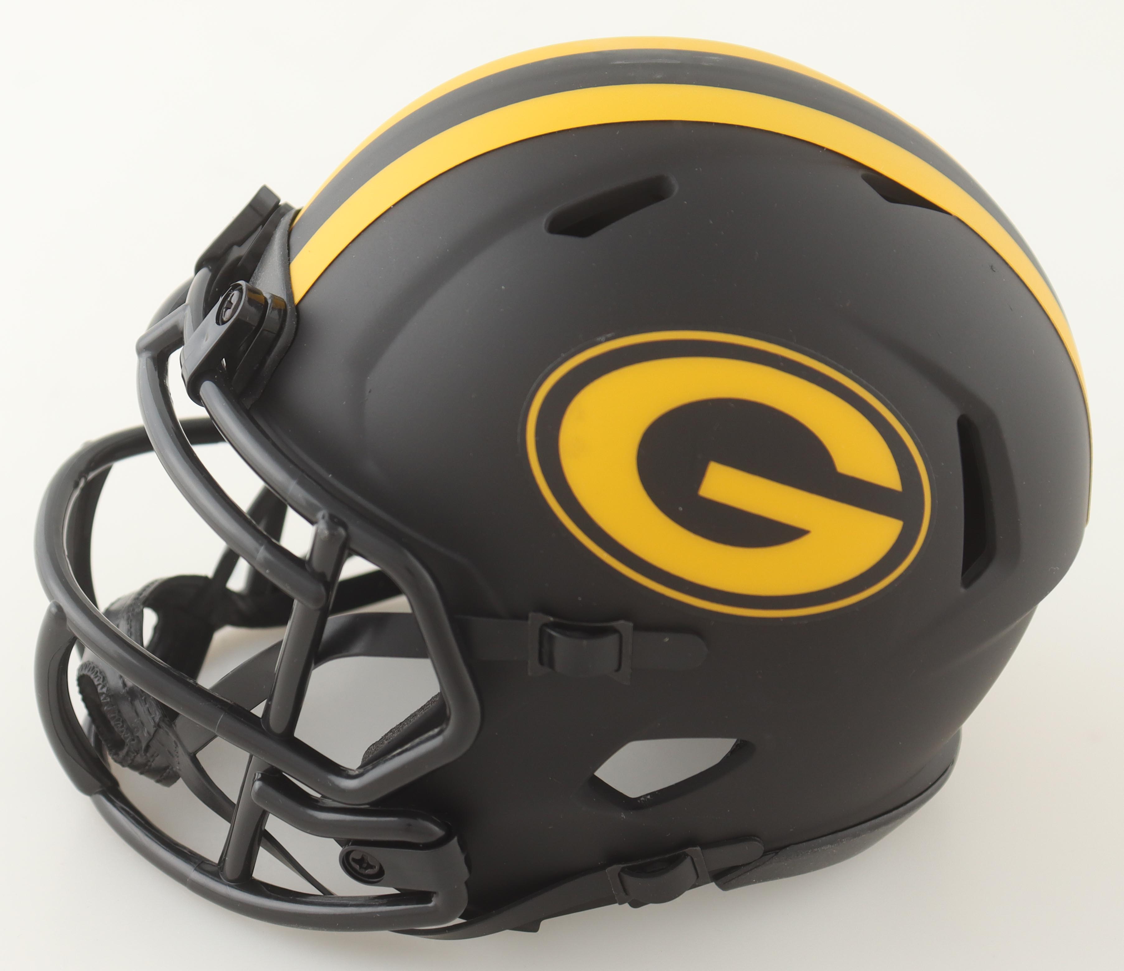 Riddell Green Bay Packers Eclipse Alternate Speed mini helmet. Hand-signed by Lukas Van Ness.