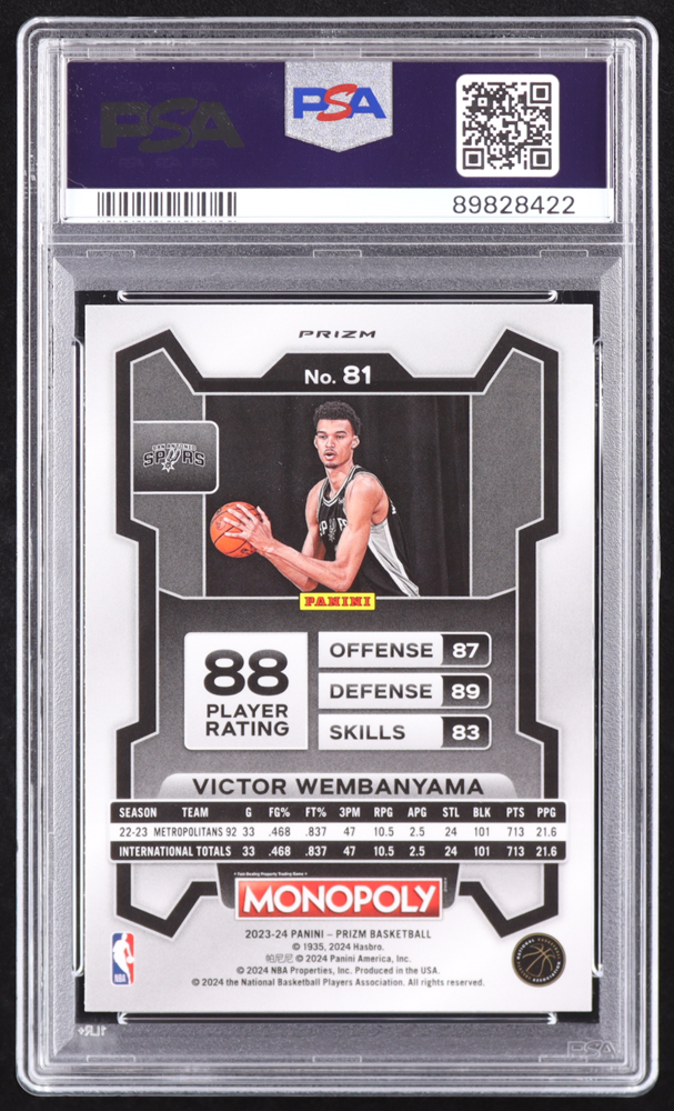 Victor Wembanyama 2023-24 Panini Prizm Monopoly Purple #81 RC (PSA 10)