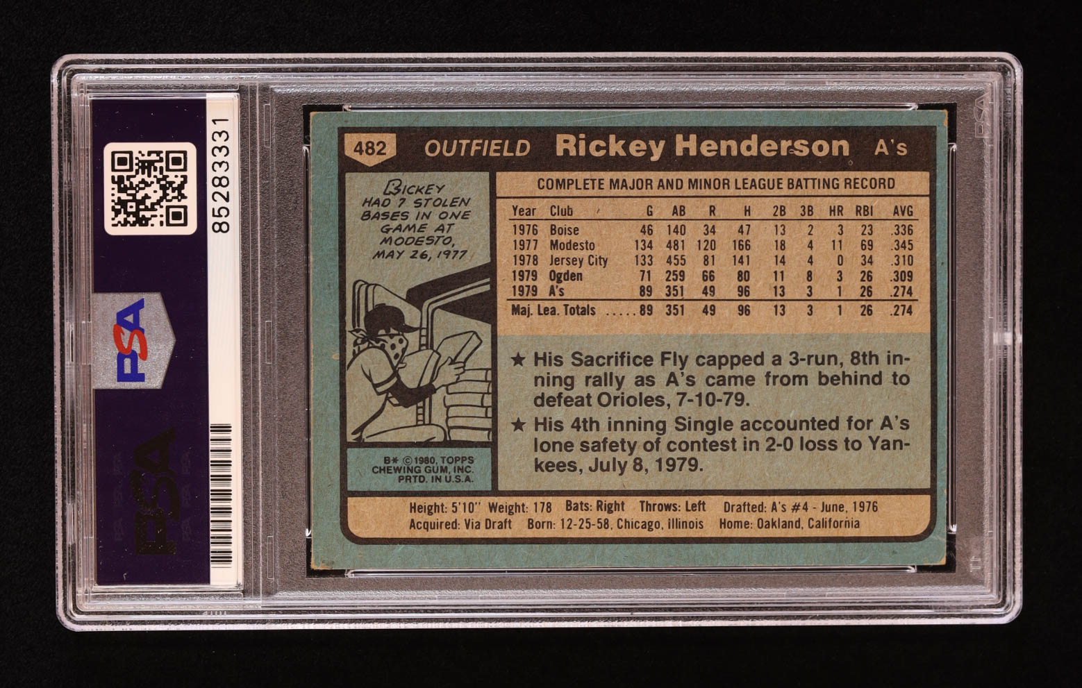 Rickey Henderson Signed 1980 Topps #482 RC (PSA | Autograph Graded PSA 10)