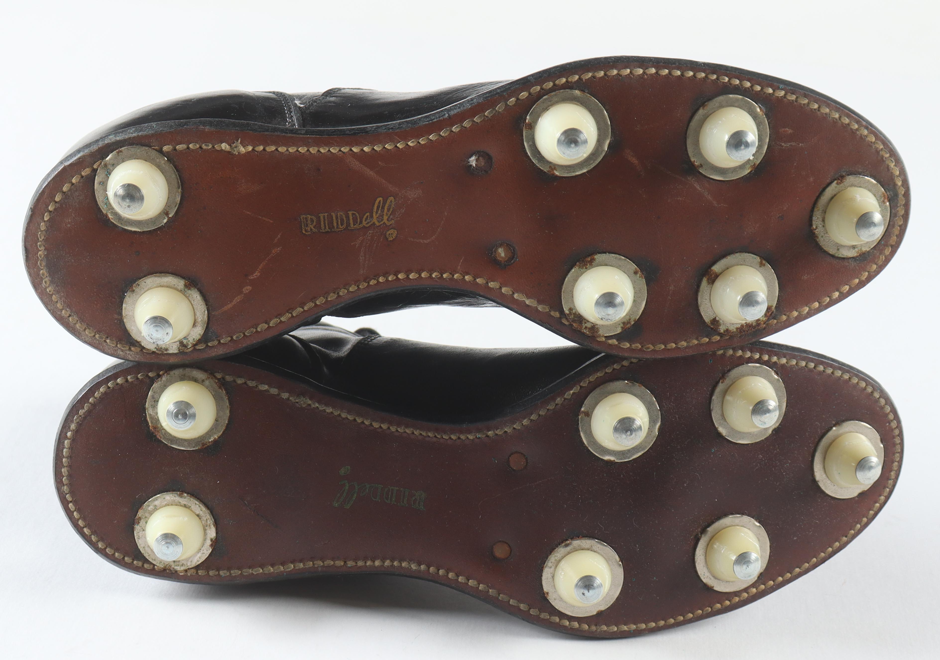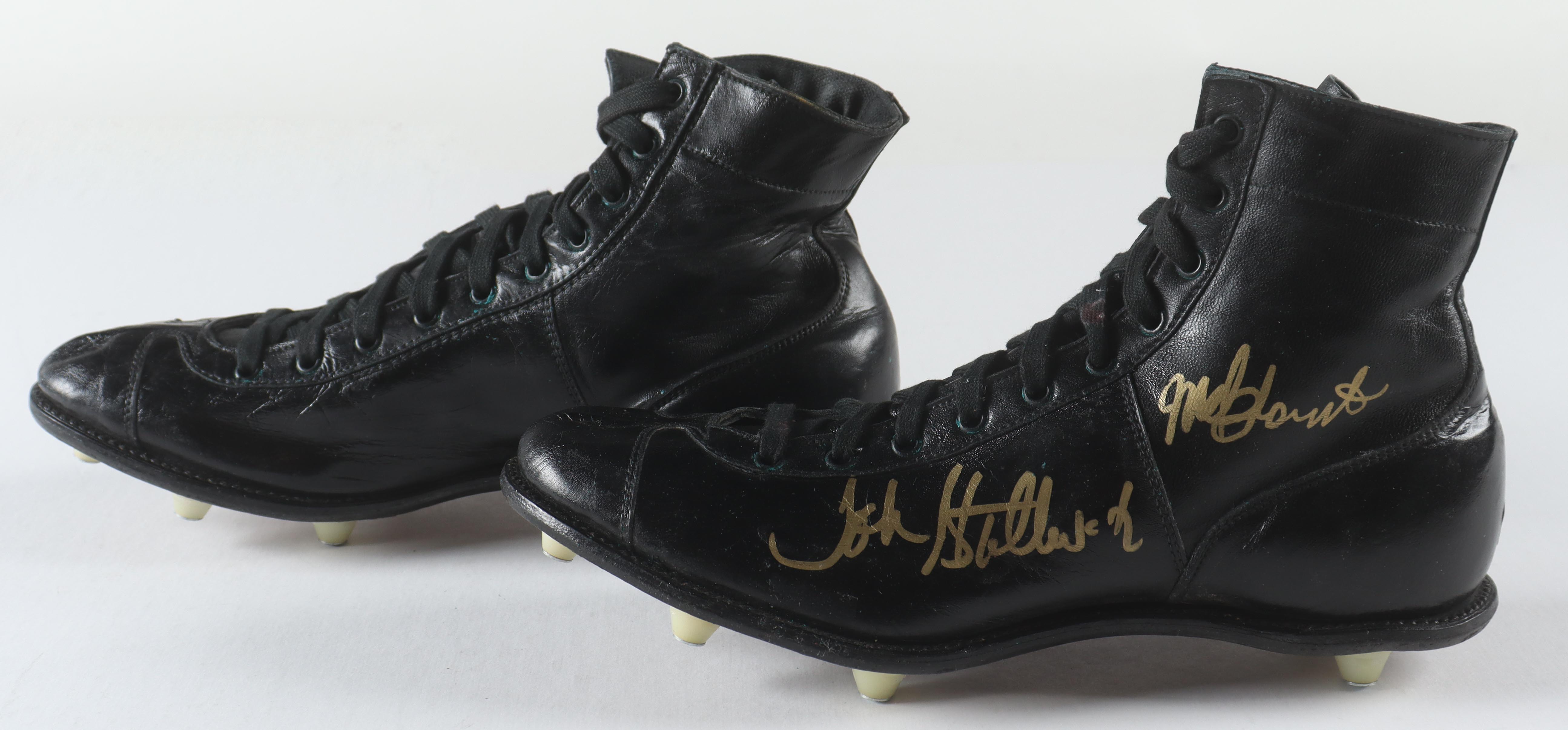 1975 Steelers Pair of (2) Vintage Leather Football Cleats Signed by Jack Ham, Mel Blount, Donnie Shell & John Stallworth With Display Case (Beckett)