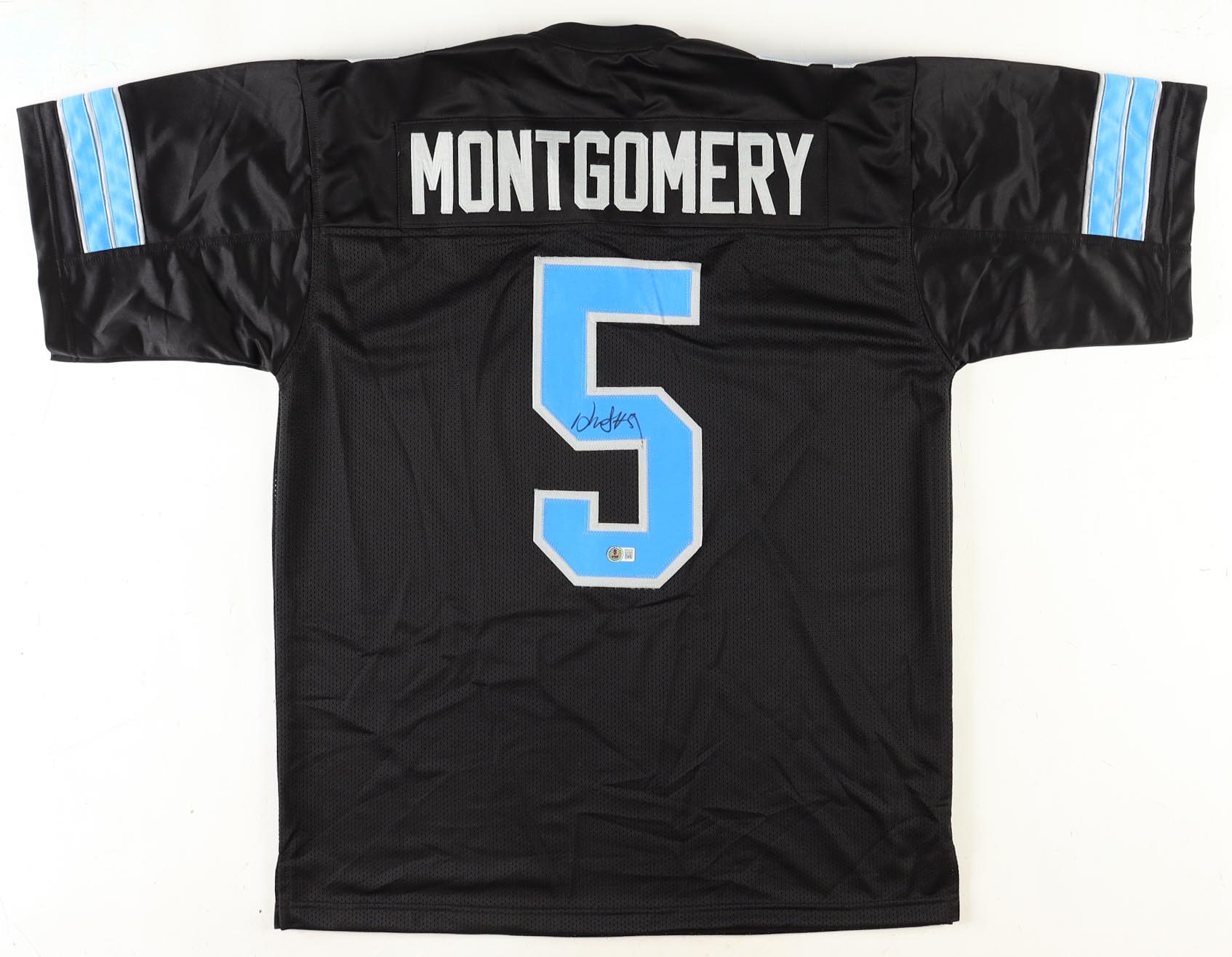 Custom jersey with everything sewn on, size XL. Hand-signed by David Montgomery.