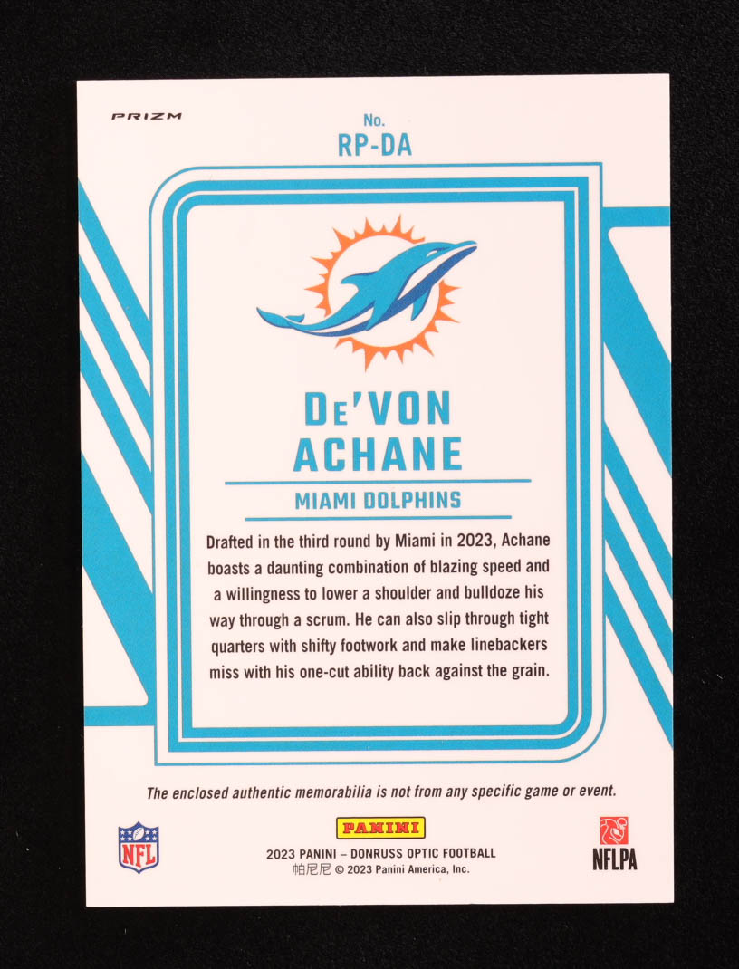 De'Von Achane 2023 Donruss Optic Rookie Phenom Jerseys Blue Hyper #DA RC