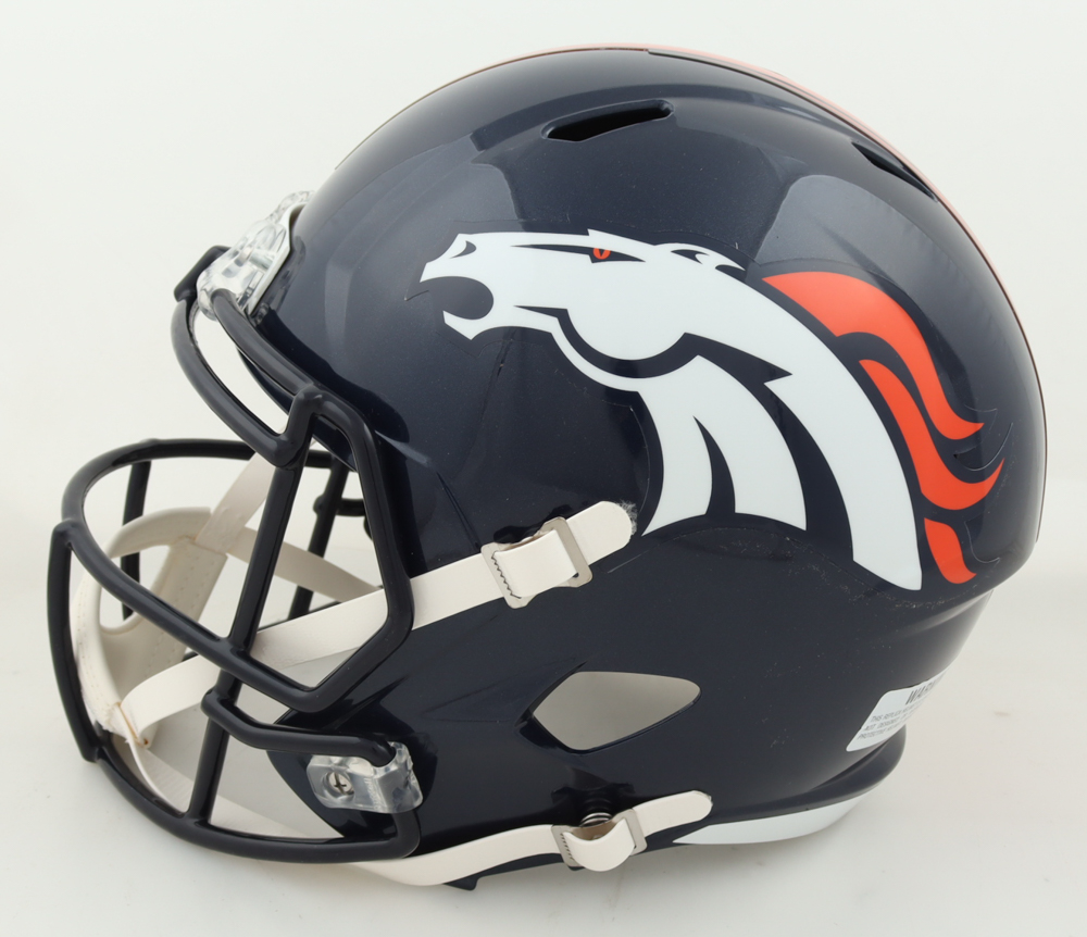 Riddell Denver Broncos full-size speed replica helmet has been hand-signed by Jerry Jeudy.