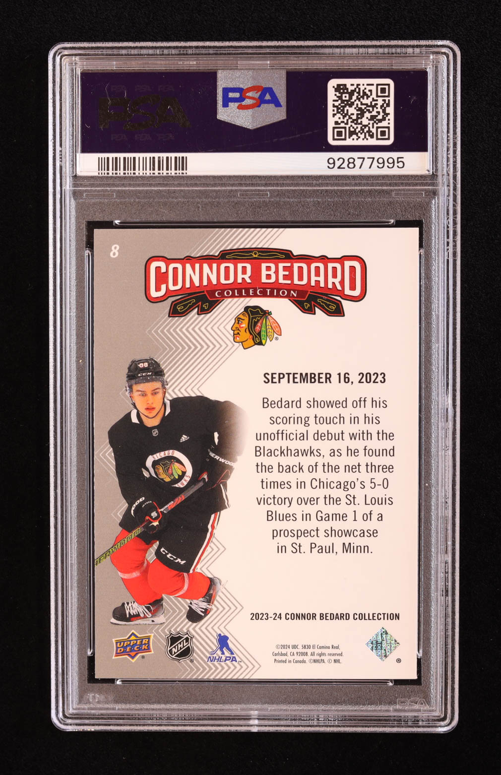 Connor Bedard 2023 Upper Deck Connor Bedard Collection Highlights #8 RC (PSA 10)
