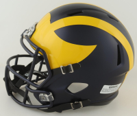 Riddell Michigan Wolverines Full-Size Authentic On-Field Speed Helmet. Hand-signed by J. J. McCarthy.