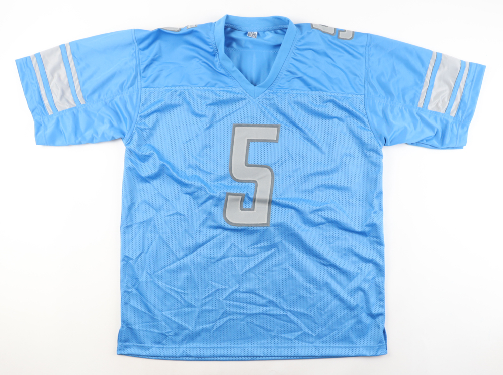 Custom jersey with everything sewn on, size XL. Hand-signed by David Montgomery.