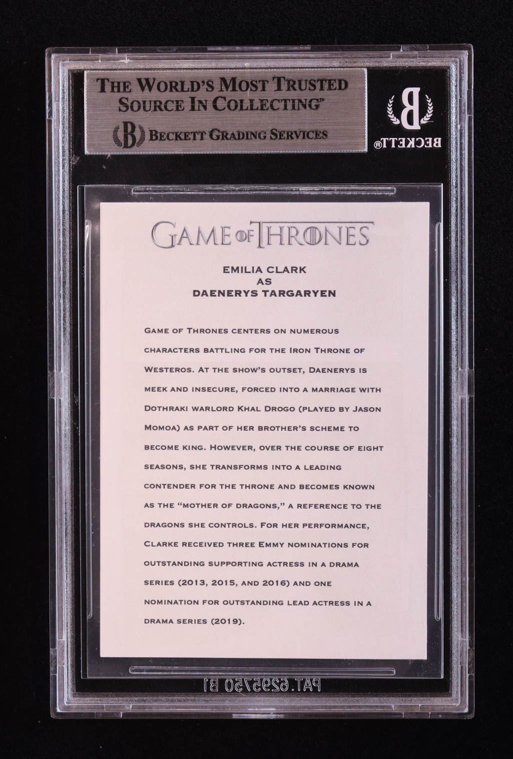 Emilia Clarke Signed "Game of Thrones" Custom Trading Card (BGS)