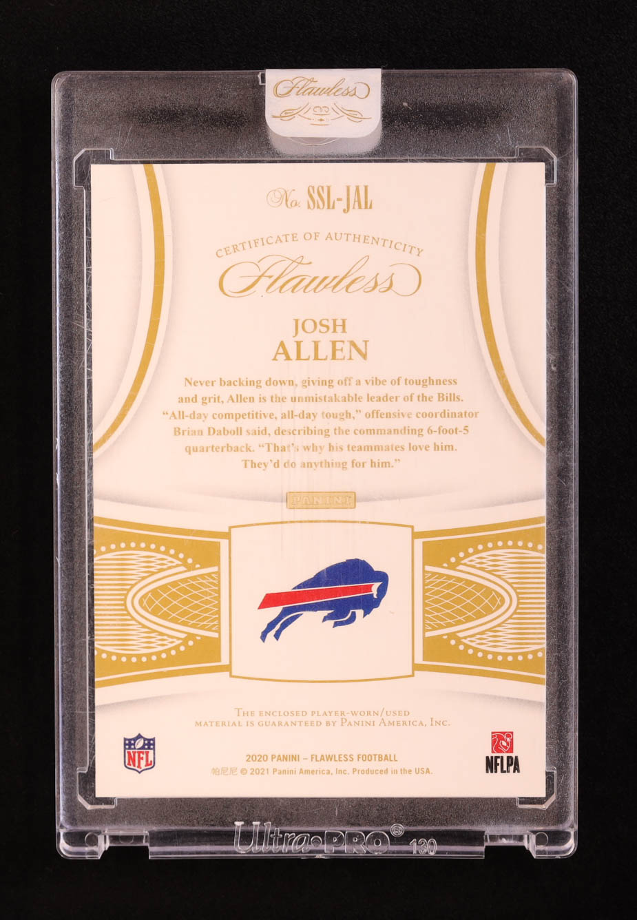 Josh Allen 2020 Panini Flawless NFL Shield Brand Logo Swatch Black #SSLJAL #3/3