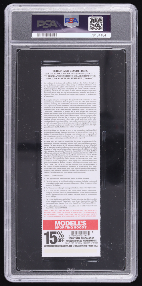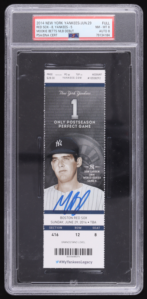 Ticket dated June 29, 2014 has been graded PSA 8. Hand-signed by Mookie Betts (New York Yankees).