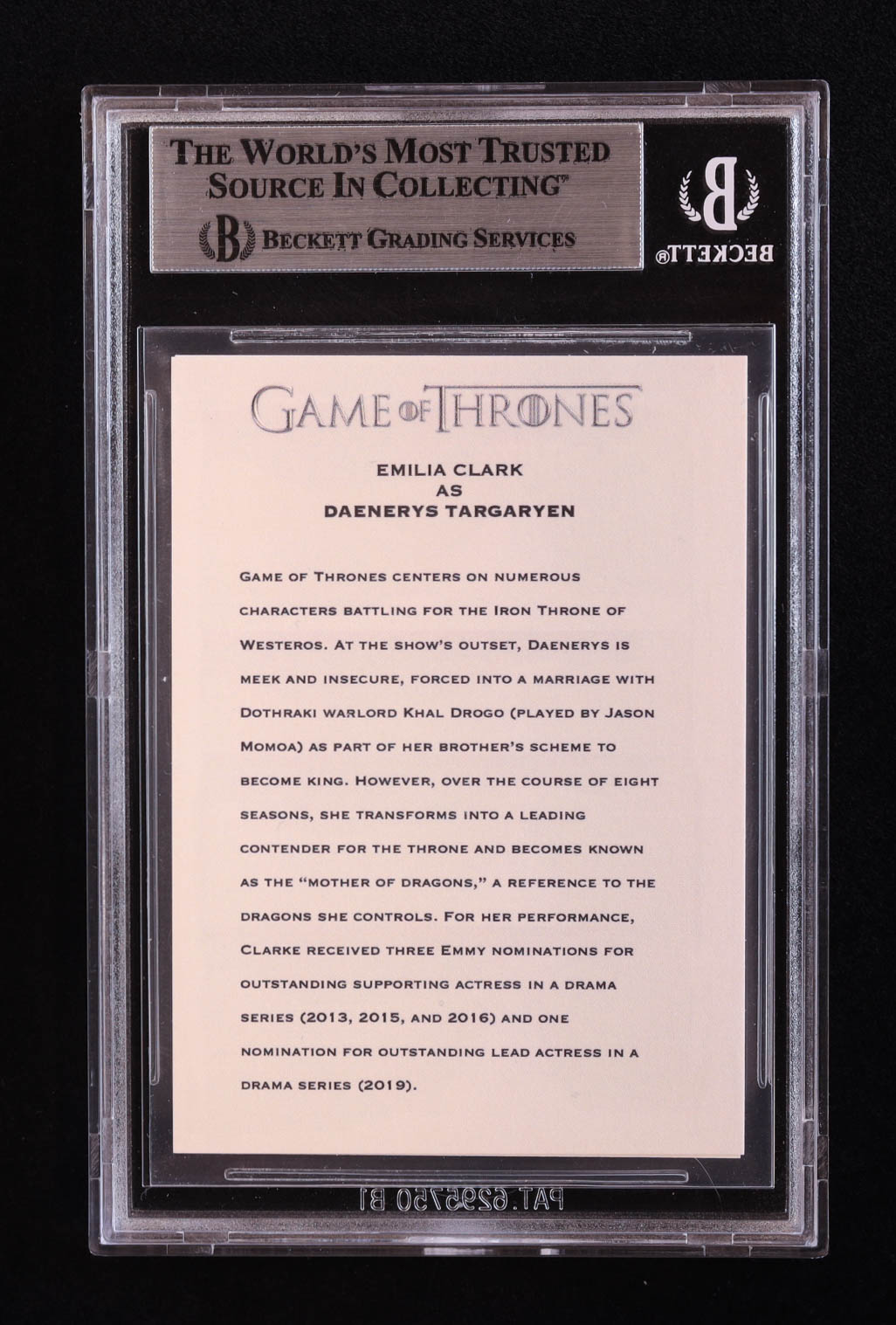 Emilia Clarke Signed "Game of Thrones" Custom Trading Card (BGS)